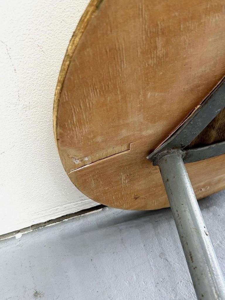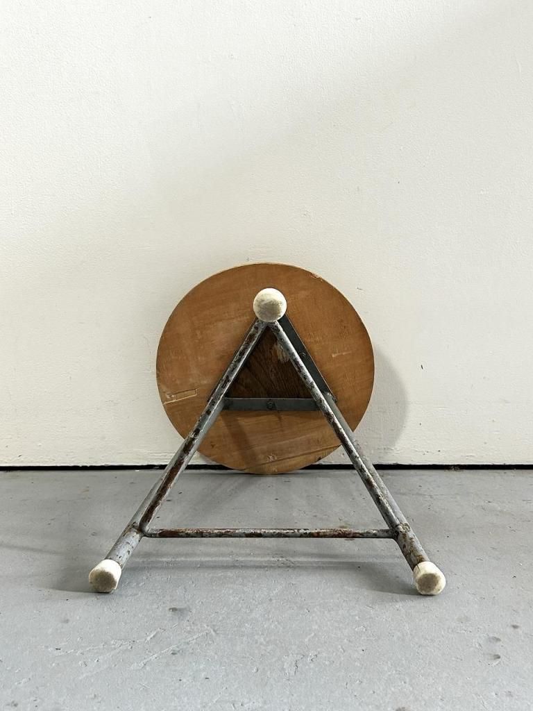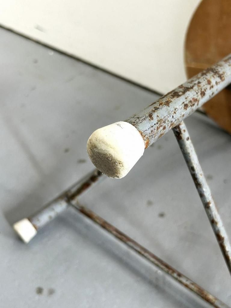 3つ脚がすっきりとした印象で、錆びやペイント汚れなど、使い込まれた風合いが大変魅力的な一脚です。