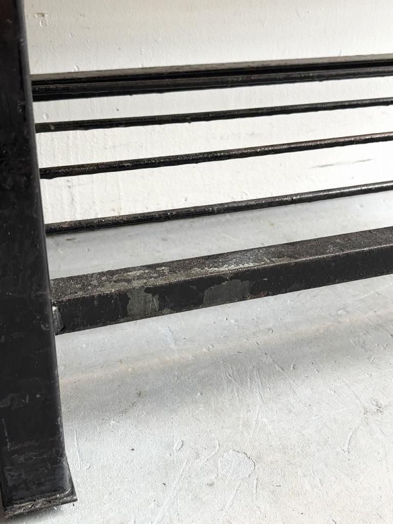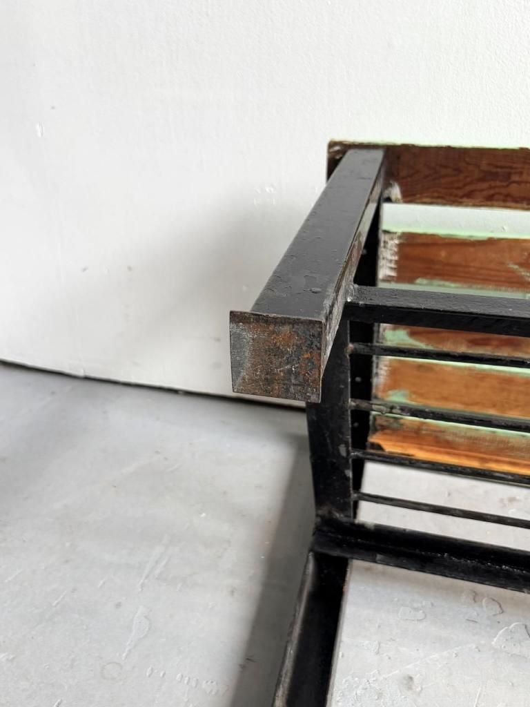 ウッド座面、アイアンベース部分全体的に傷や擦れ、塗装剥がれがございます。