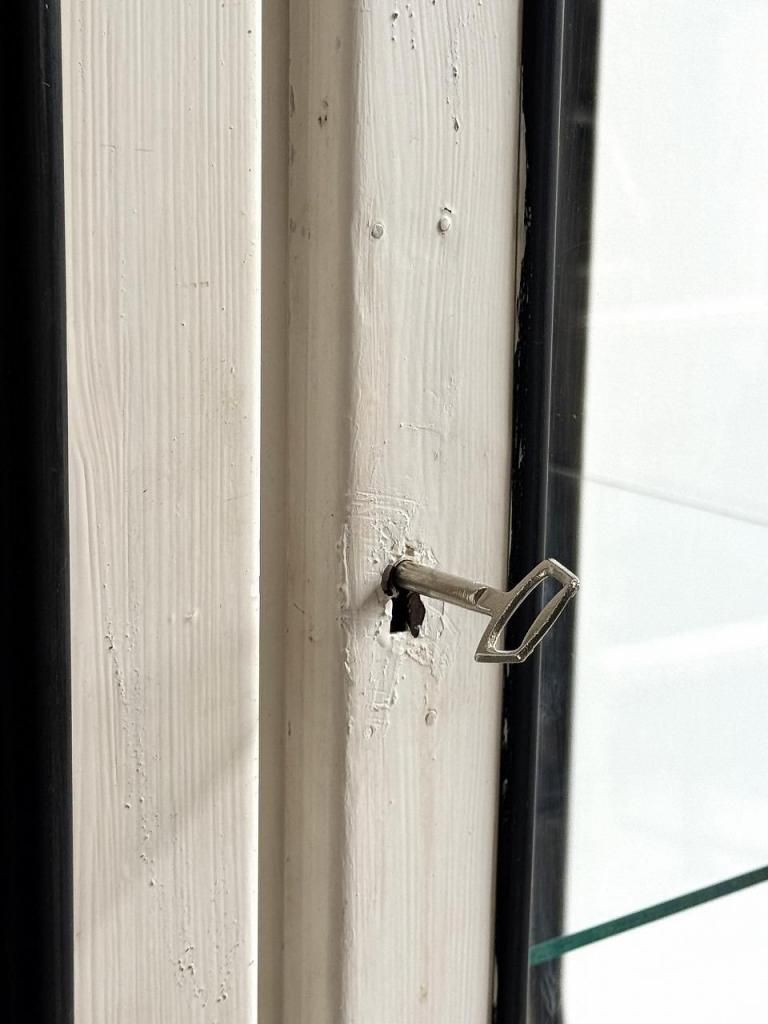 適度にエイジングが見られ、畝りのあるアンティークガラスが古いものである事を裏付けています。