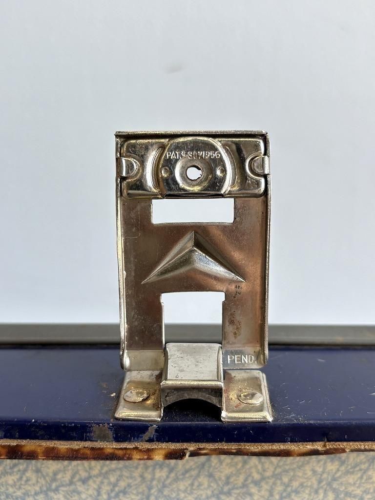 中央にはプラスチック製の取っ手が付いており、持ち運びもスムーズ。旅の必需品として作られた名残を感じさせる実用的なデザインです。