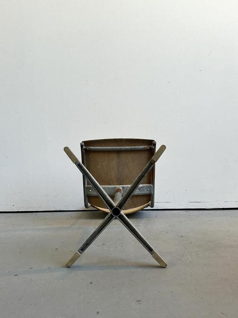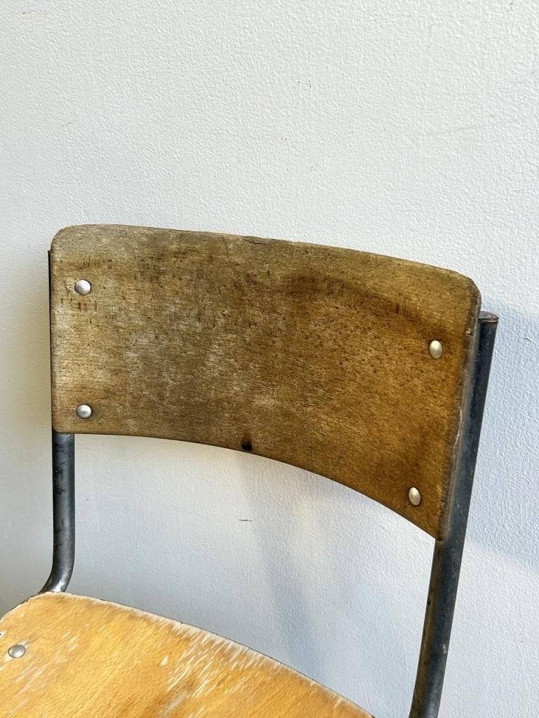 無骨なスチールベースに、プライウッド製の座面と背もたれを組み合わせたインダストリアルなデザインの一脚。