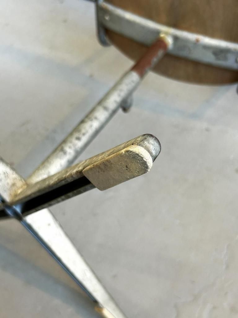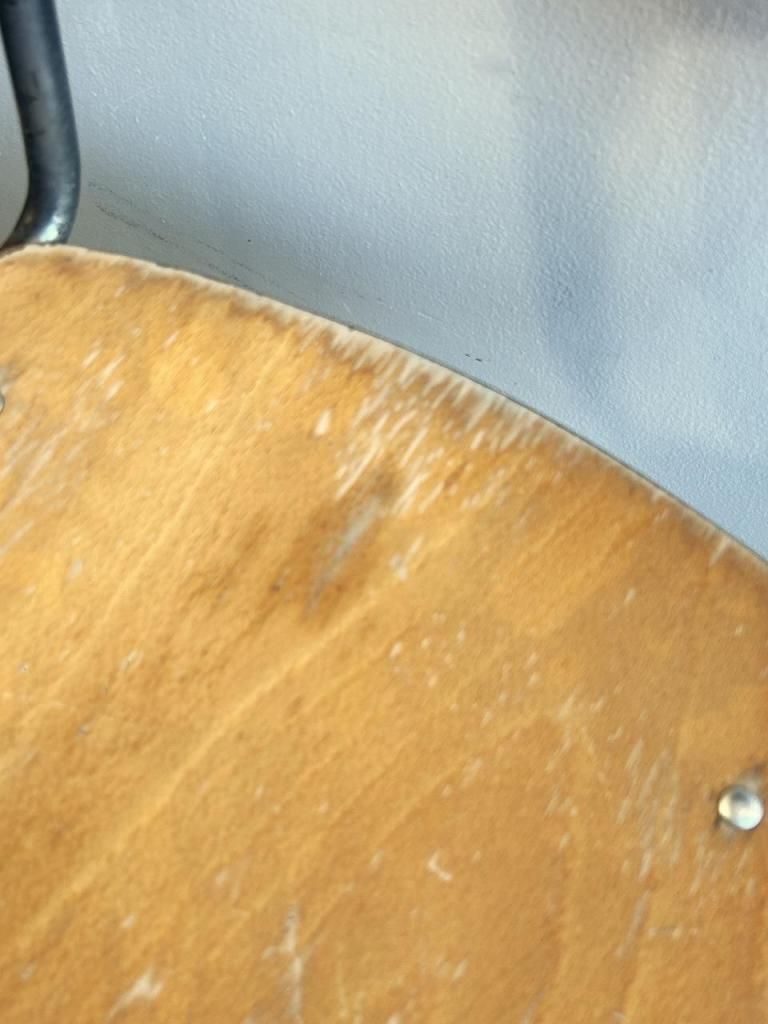 ペイントの剥がれや金属の酸化、木部の経年変化が重なり合い、長年の使用により生まれた独特の質感が魅力です。