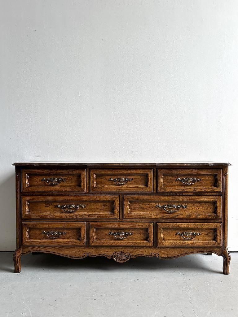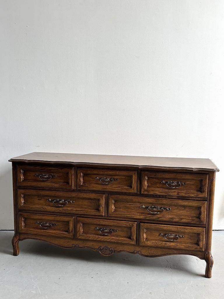 アメリカにて買い付けました、1970-80年代頃のAmerican Drew社製 ヴィンテージ ウッド サイドボードです。