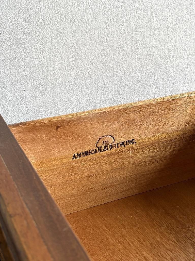 引き出し内部には “AMERICAN DREW, INC.” の焼印が現存しております。