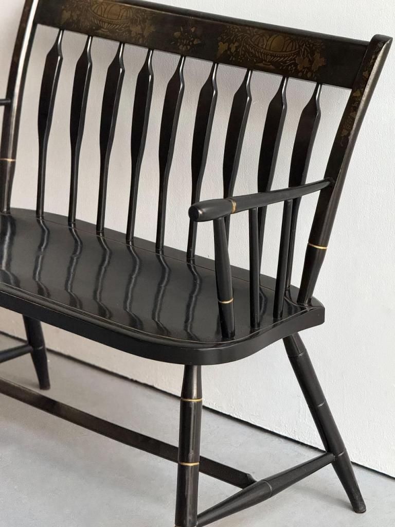 黒×金のコントラストは、アメリカン・コロニアルやイギリスクラシックな空間にはもちろん、現代のシンプルな空間にもこのベンチを置くだけで良く映えます。