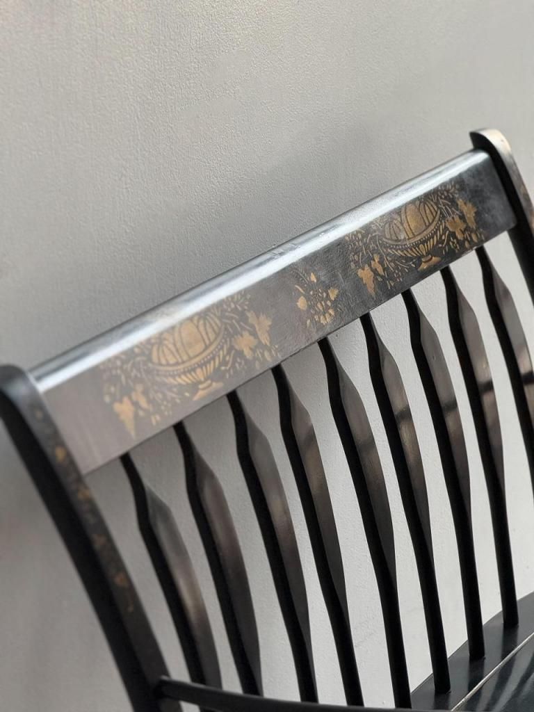 随所に金装飾が施されたHitchcock chair(ヒッチコックチェア)に通じるデザインで、平面的な模様ですので、華美になりすぎず上品さがあります。