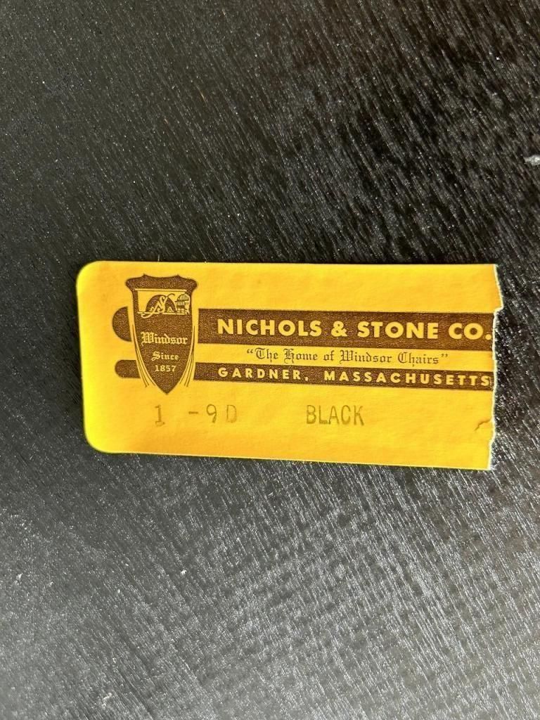 Nichols & Stone Co.(ニコルズ&ストーン社)は、1857年創業アメリカ・マサチューセッツ州ガードナーに拠点を置いた老舗家具メーカーで、タグに書かれた「The Home of Windsor Chairs(ウィンザーチェアの本場)」というキャッチコピーの通り、ウィンザーチェアやその派生スタイルの家具で有名です。