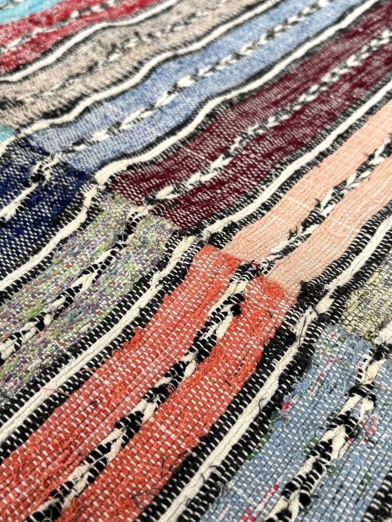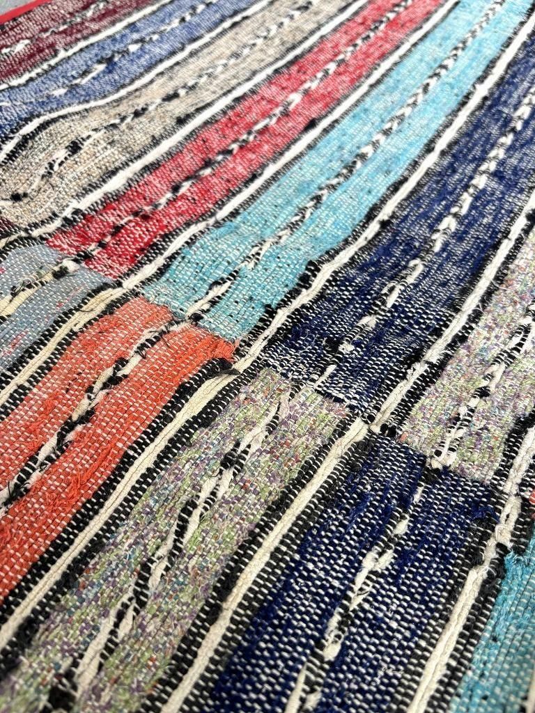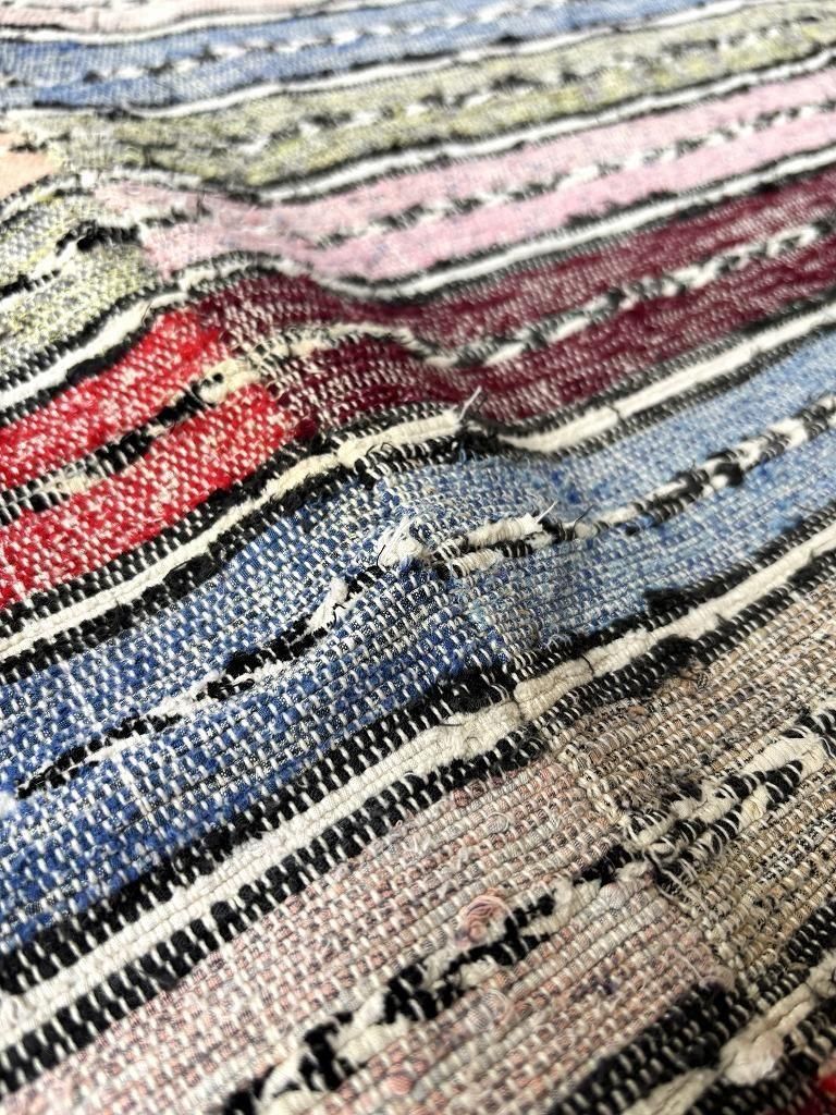 古い衣類や布地を裂いて再利用したもので、素朴な織りムラや色糸の混ざりが一点ごとの個性を生み出しています。