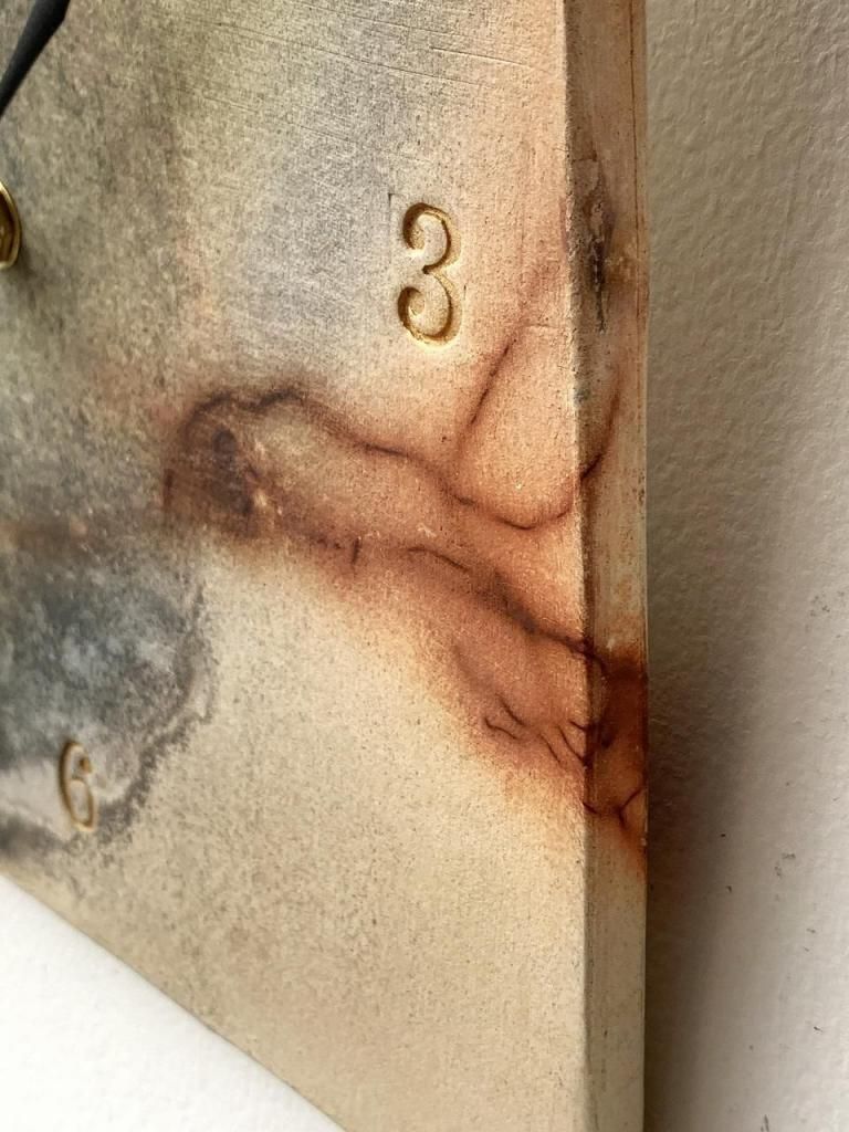 焼き物や陶板を思わせる味わい深い質感と、抽象的なマーブル模様が魅力的な、まるでアートのような一点。