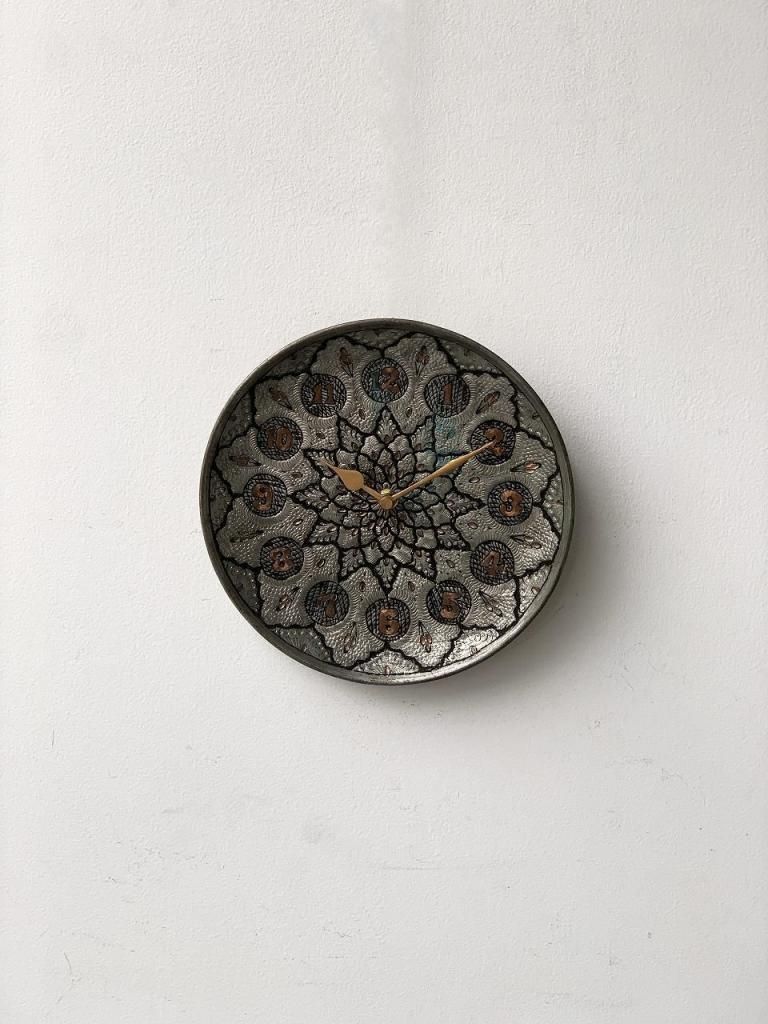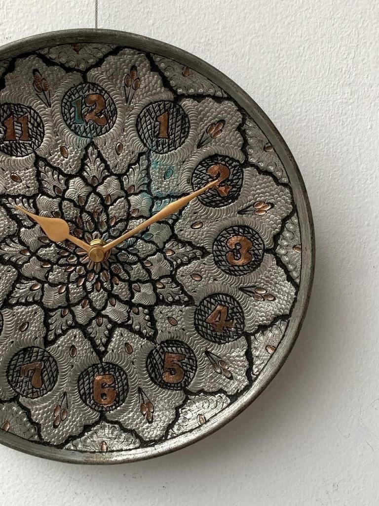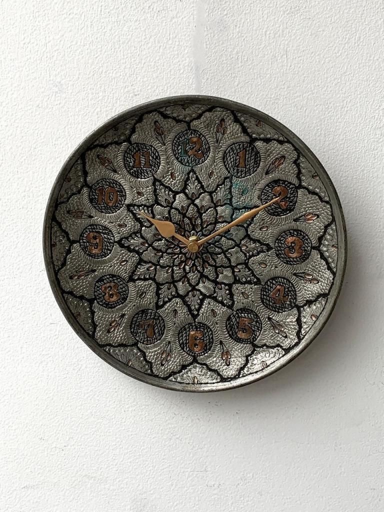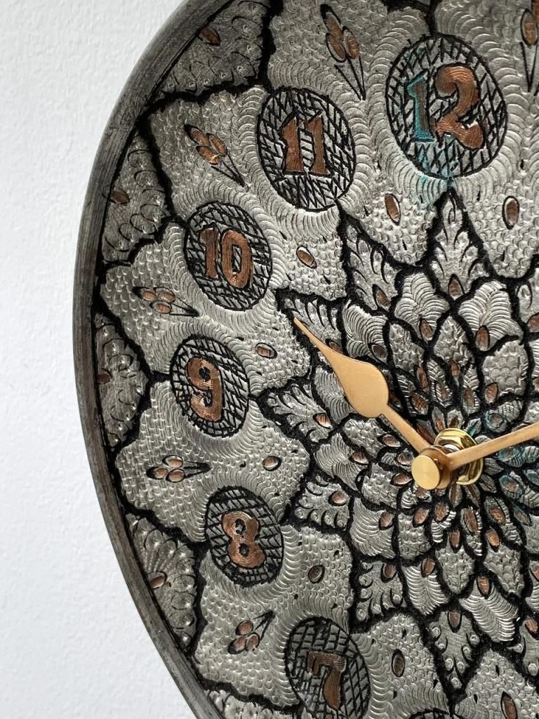 緻密なエンボス模様と、手彫りのような数字装飾が組み合わさり、オリエンタルな雰囲気とアートのような存在感を併せ持っています。