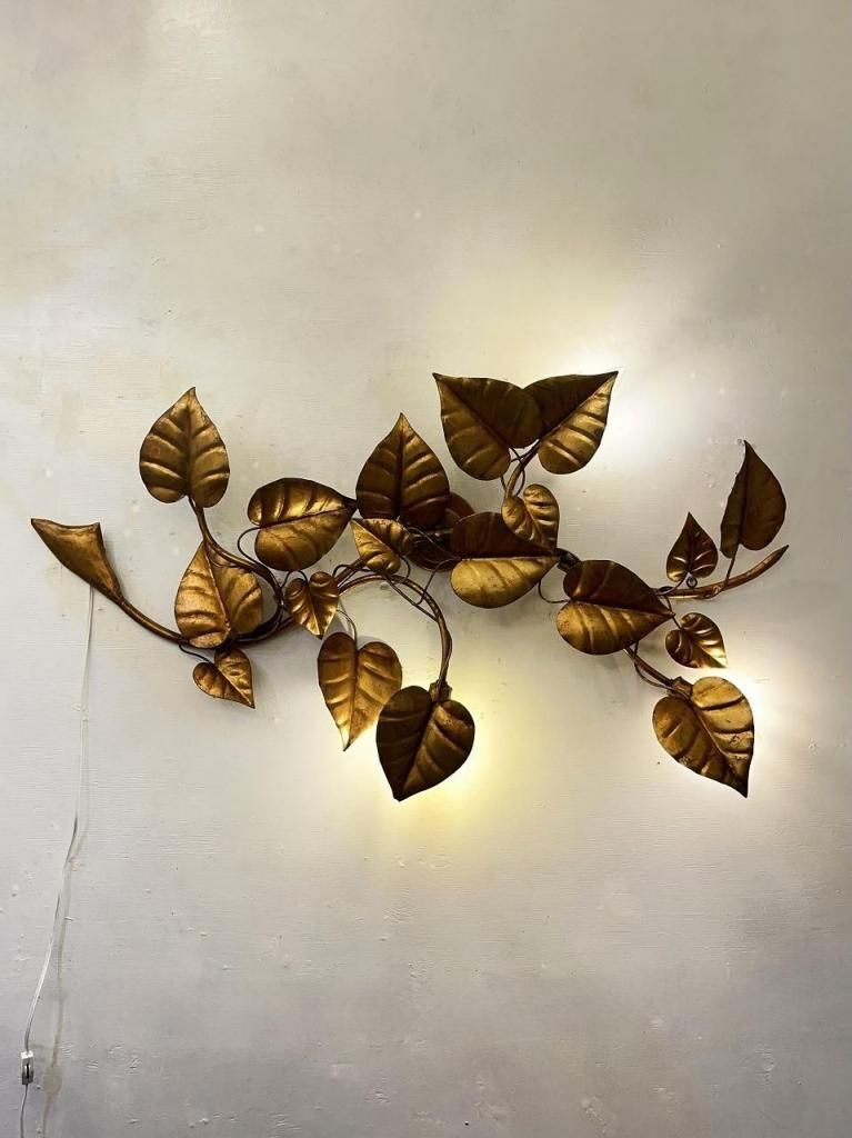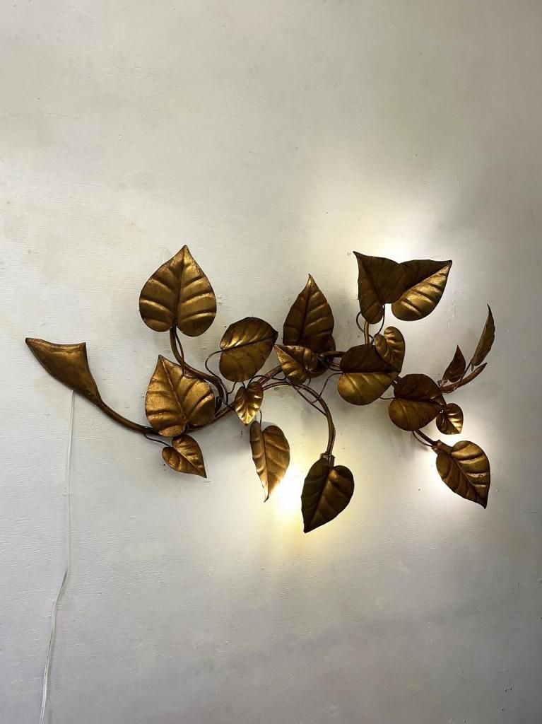 アメリカより仕入れました、壁面を這うように伸びる蔦と葉をモチーフに、立体的に構成されたメタル製のブラケットランプです。