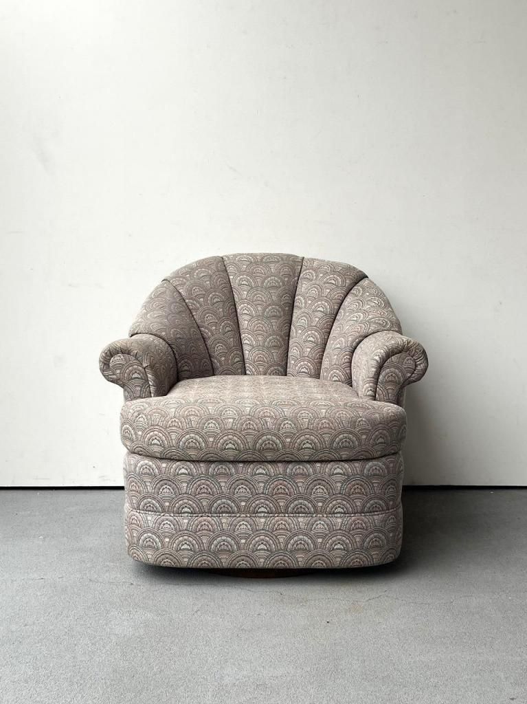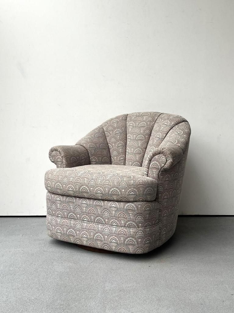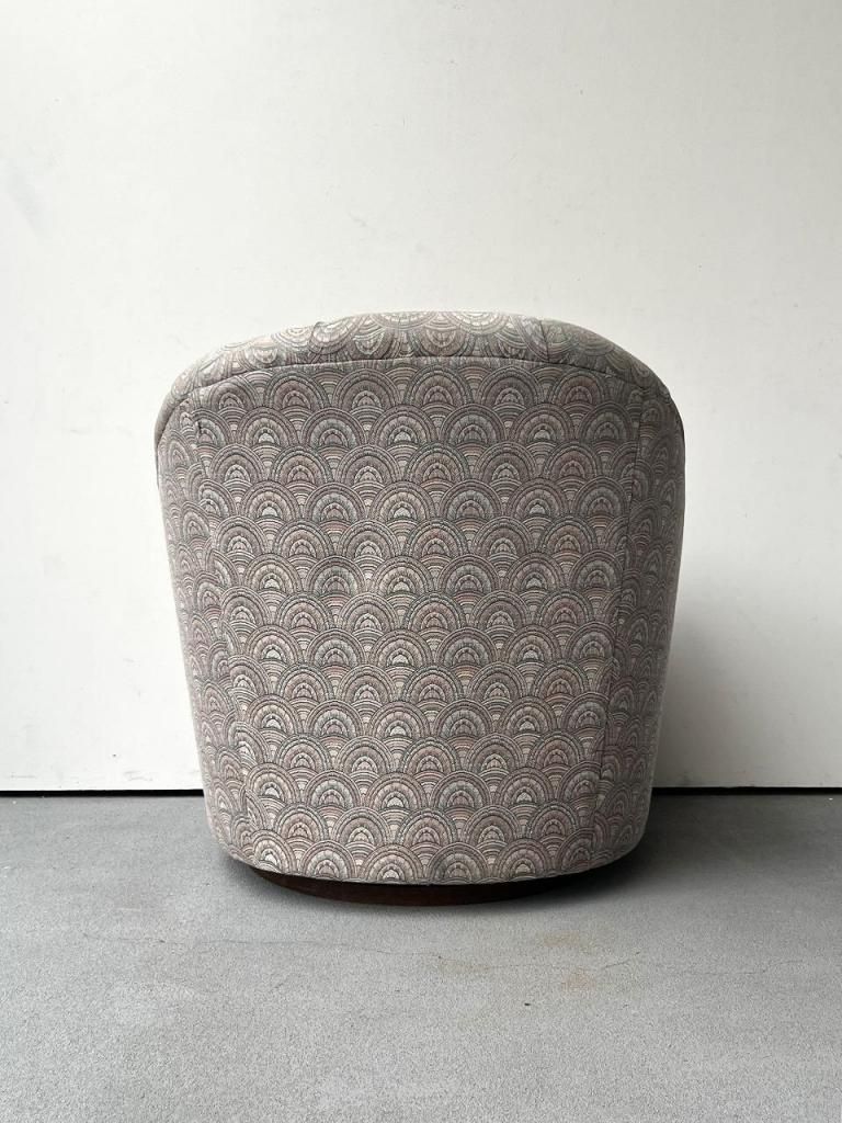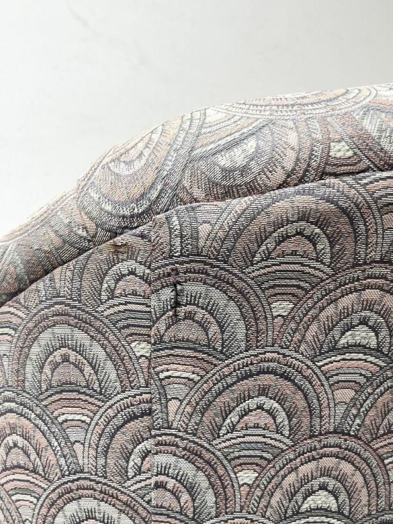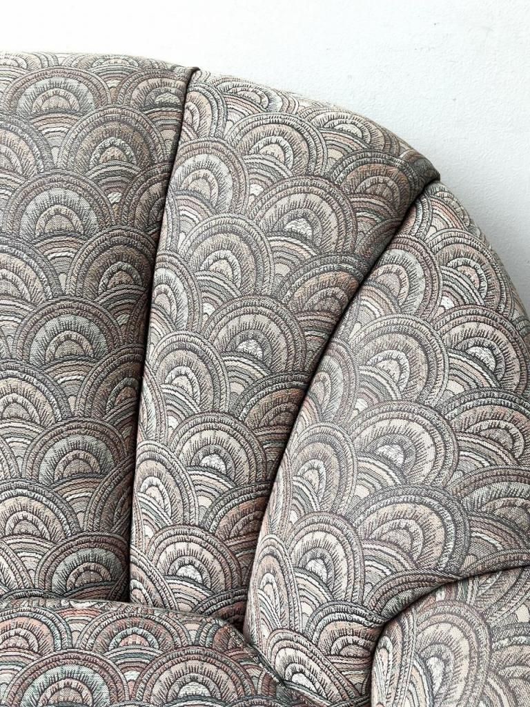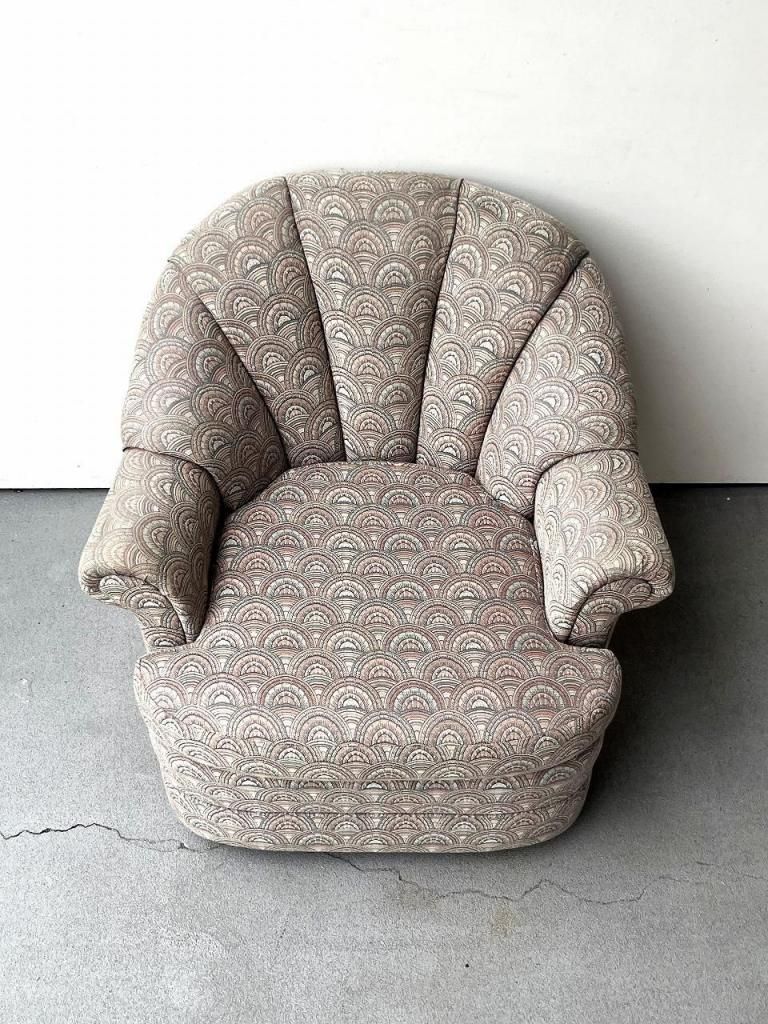 全体を覆う生地は、淡いトーンの幾何学模様が織り込まれた上質なファブリックを使用し、アール・デコを思わせる半円のパターンが印象的で、空間に程よい華やかさと上品さを添えます。