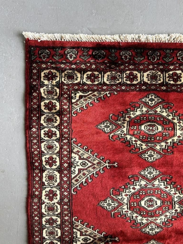 ハンドノット(手結び)により一枚一枚つくられており、鮮烈な赤と中間色の組み合わせにより、高級感と温かみが同居したカラーリングで光の角度で艶感が浮かび上がり、絨毯特有の立体的な表情が生まれています。