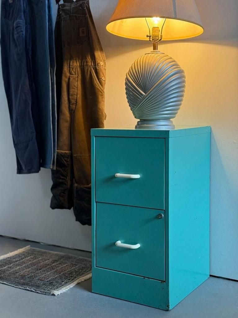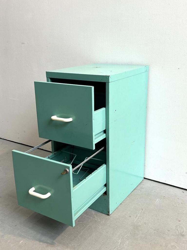 ミントグリーンの爽やかな色合いと、ホワイトの取っ手がお部屋にアクセントを加えてくれるこちらの一点。
