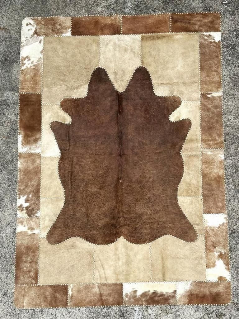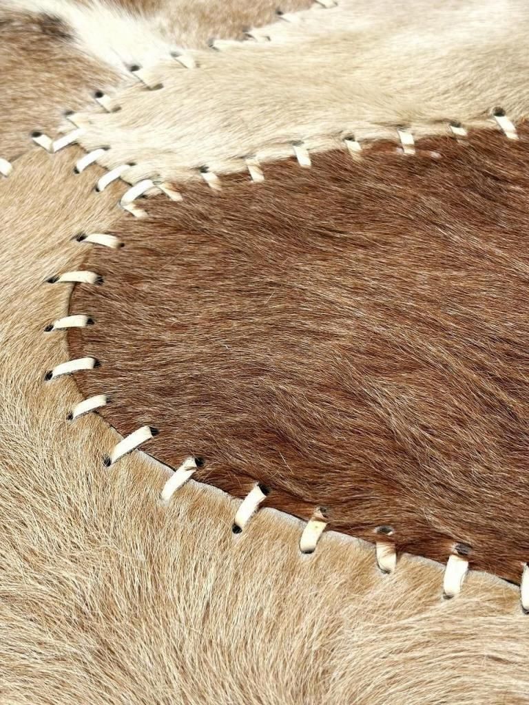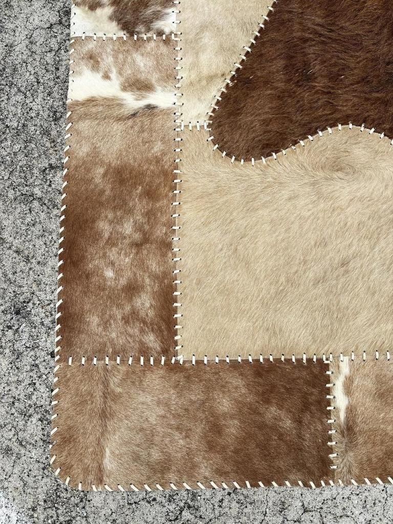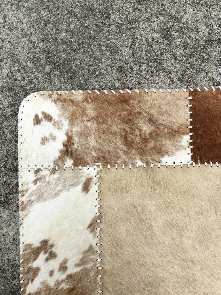 牛革をパッチワーク状に縫い合わせたデザインで、一部分ごとに表情が異なるのが特徴的です。