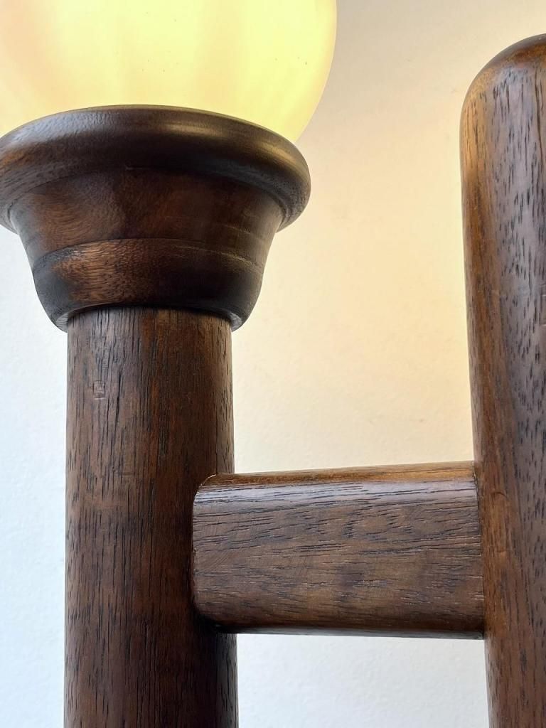 Modeline社は、戦後のカリフォルニアデザイン黄金期に生まれたブランドで、ウォルナットやパインなどの無垢材を使い、光と木の質感を融合させた彫刻的な照明作品を数多く生み出しました。