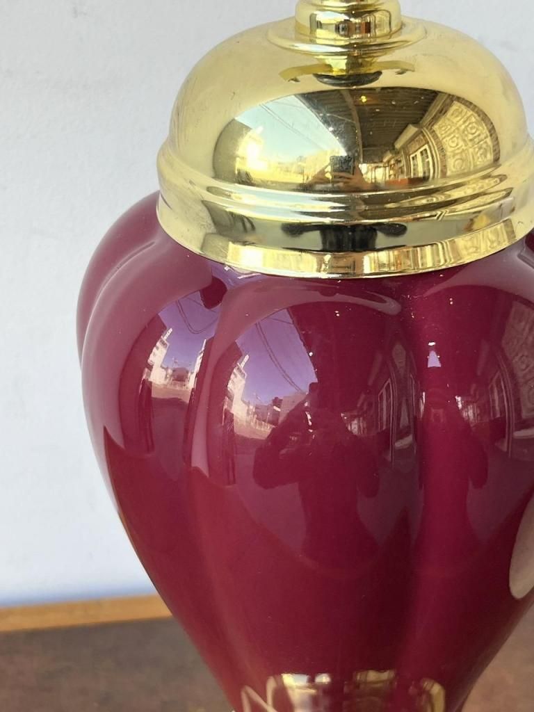 ベースは光沢ある深いバーガンディ色のセラミックで、1970-80年代におけるリッチで品のあるカラーの代表格です。