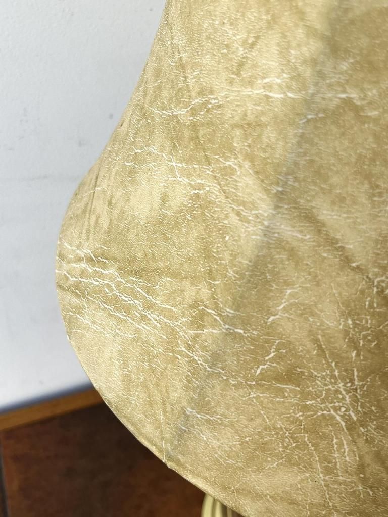 ベル型シェードは光が自然に下へ広がるため、読書灯やサイドテーブルライトに最適な形状で、灯りをつけるとわずかに透けた模様が浮かび上がるのが特徴的です。