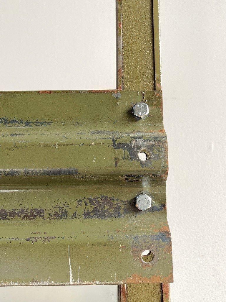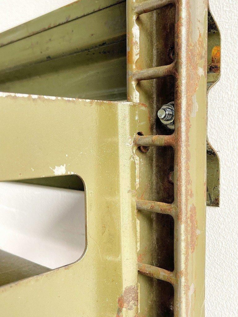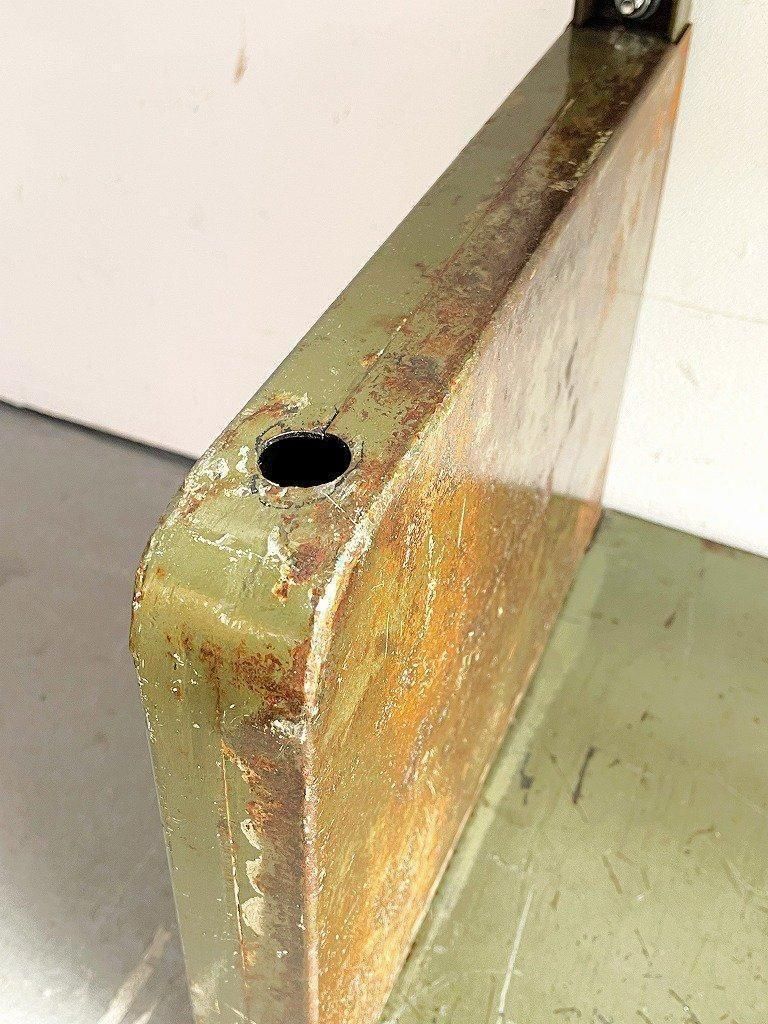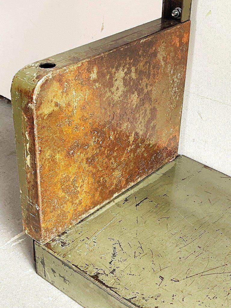 主体色はややグレーがかったオリーブドラブ(軍用グリーン)で、戦後期の東欧工業製品によく使われたミリタリー由来の塗料色を使用。スチールが酸化して赤錆色になりヴィンテージインダストリアルの空気感が味わい深いです。