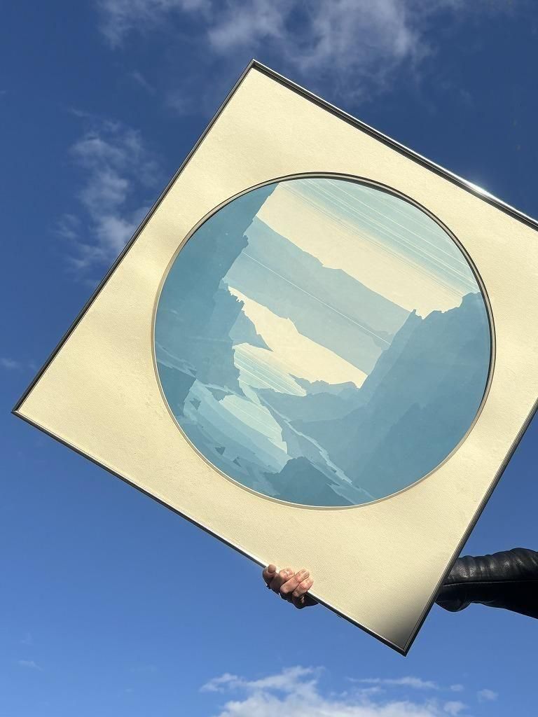 正円の中に風景を収める構図が特徴的で、奥行きが生まれ望遠鏡などで覗き込んでいる感覚になる1枚。
