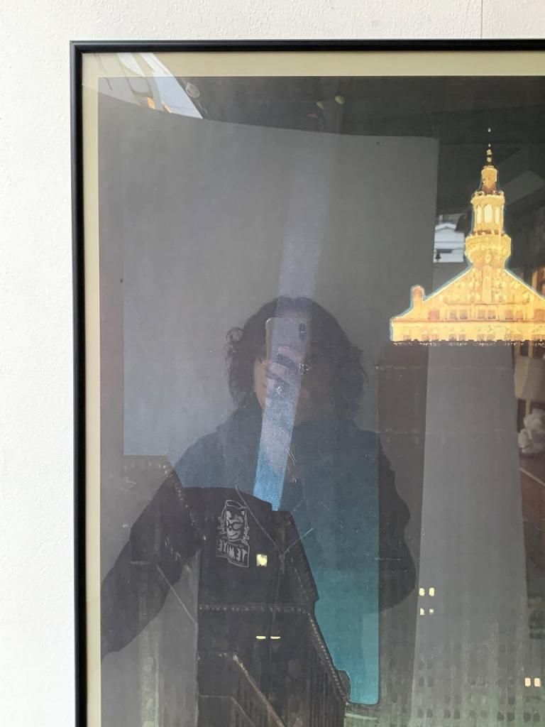 当時のニューヨークの近代建築の象徴「New York Central Building」。黄金色の塔頂部が強調され、下部の街路から空へと導く構図は、アールデコ建築の理想を体現しています。