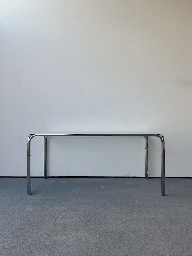 装飾をそぎ落とした直線的な構成で、光沢のあるクローム×ガラスの組み合わせが洗練された印象の1台。