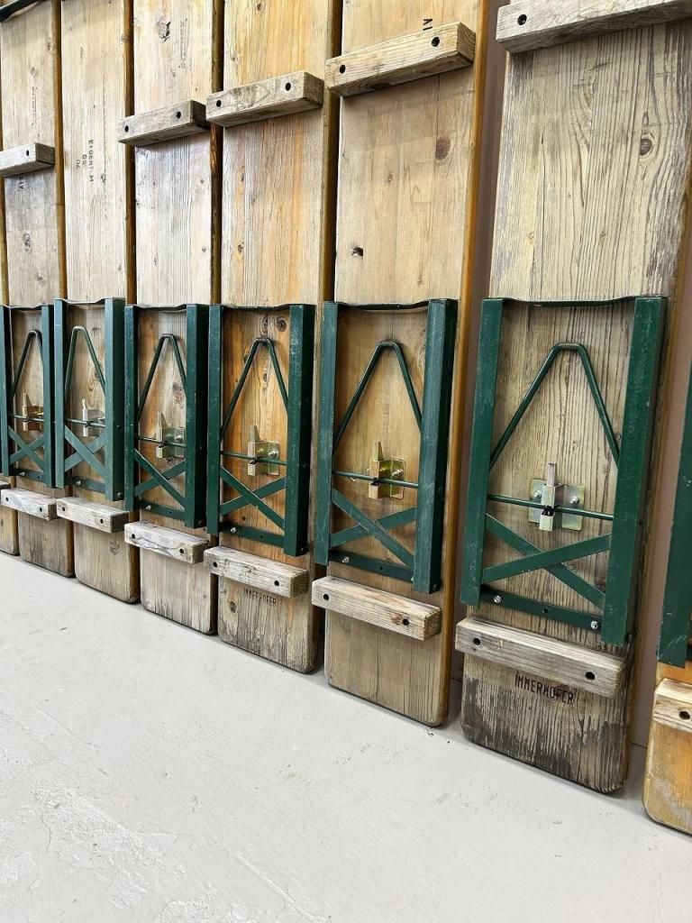 東ヨーロッパにて買い付けました、ヴィンテージ ウッド フォールディング テーブル/ベンチ セットです。