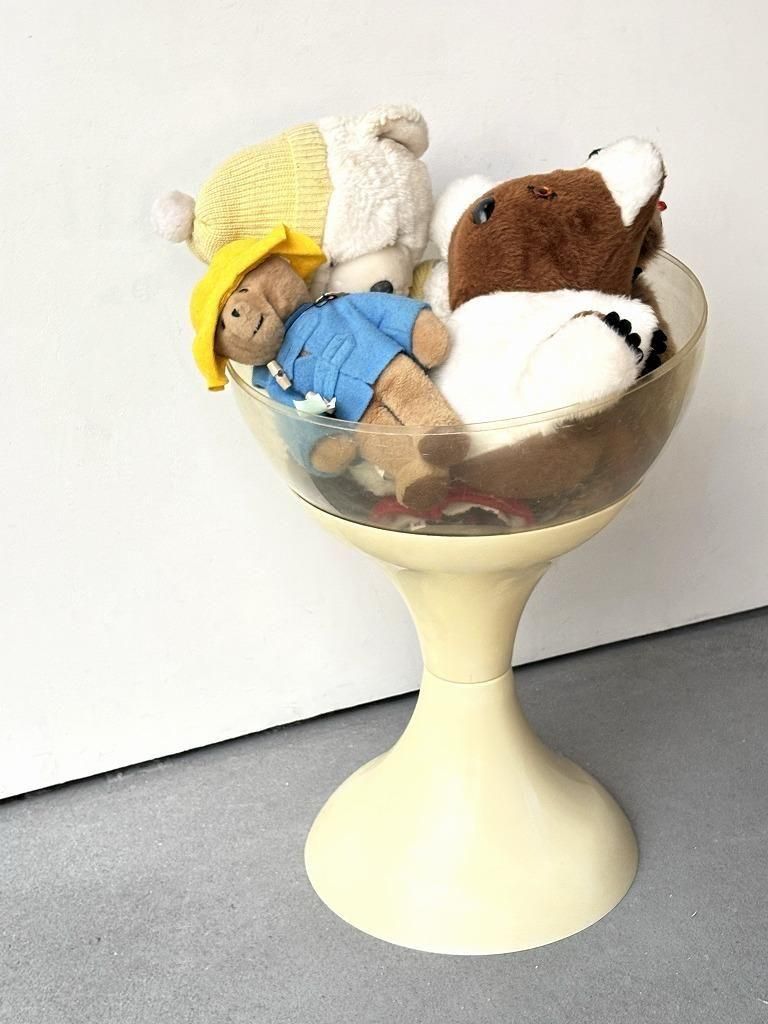 当時からインテリア性の高いディスプレイ家具として人気を博しておりましたが、現在でも観葉植物を飾るプランタースタンド、ぬいぐるみや雑貨等を入れるディスプレイボウルとしては勿論、LEDライトを仕込んでランプベースとして使用するなど、店舗や家庭を問わず幅広い使い方が出来ます。