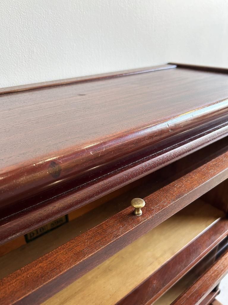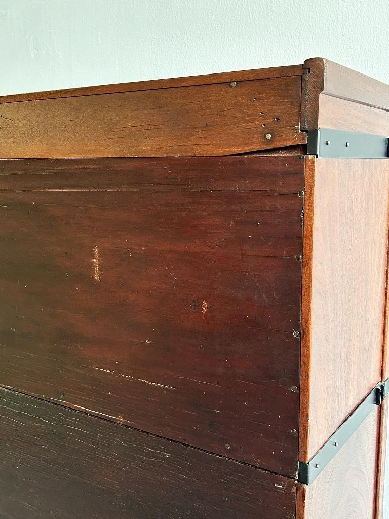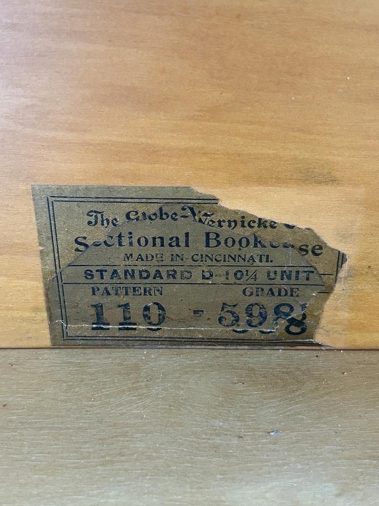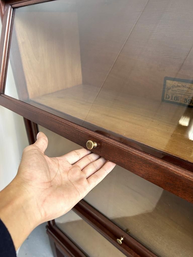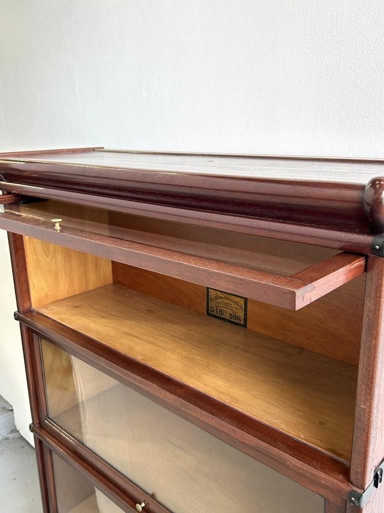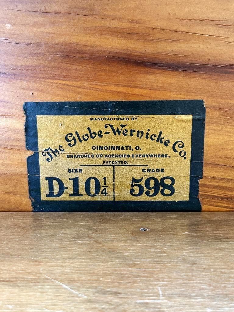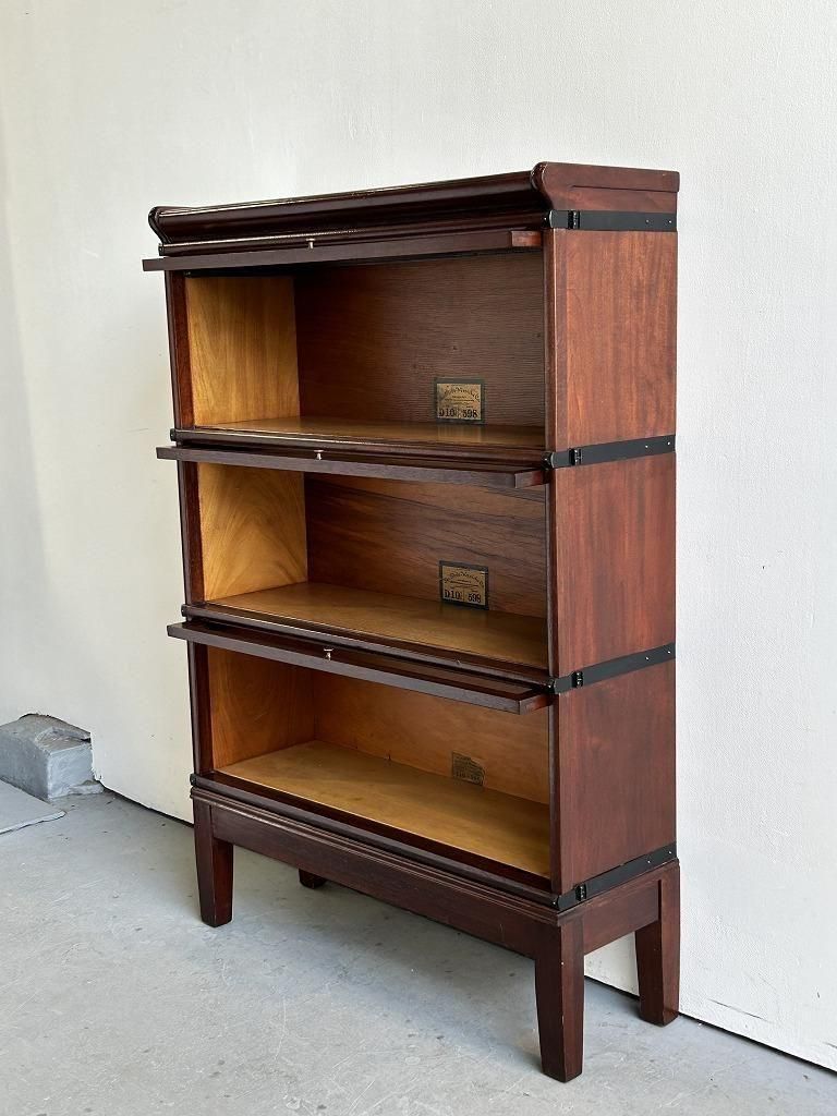 Globe Wernicke社は1899年創業のアメリカ・オハイオ州シンシナティを拠点に、イギリスやドイツにも工場を持ち、世界中で販売された歴史ある家具メーカーです。同社を代表するこの「バリスタブックケース(Barrister Bookcase)」は、耐久性と機能美を兼ね備えた20世紀初頭のオフィス家具の象徴とされています。