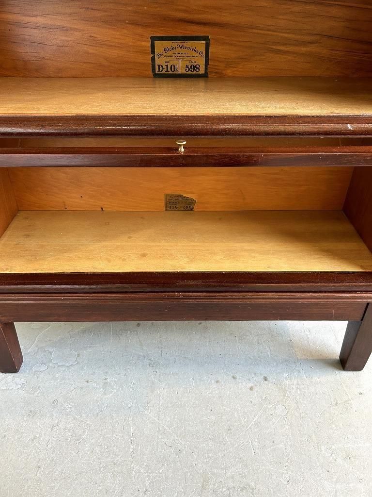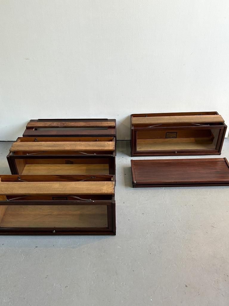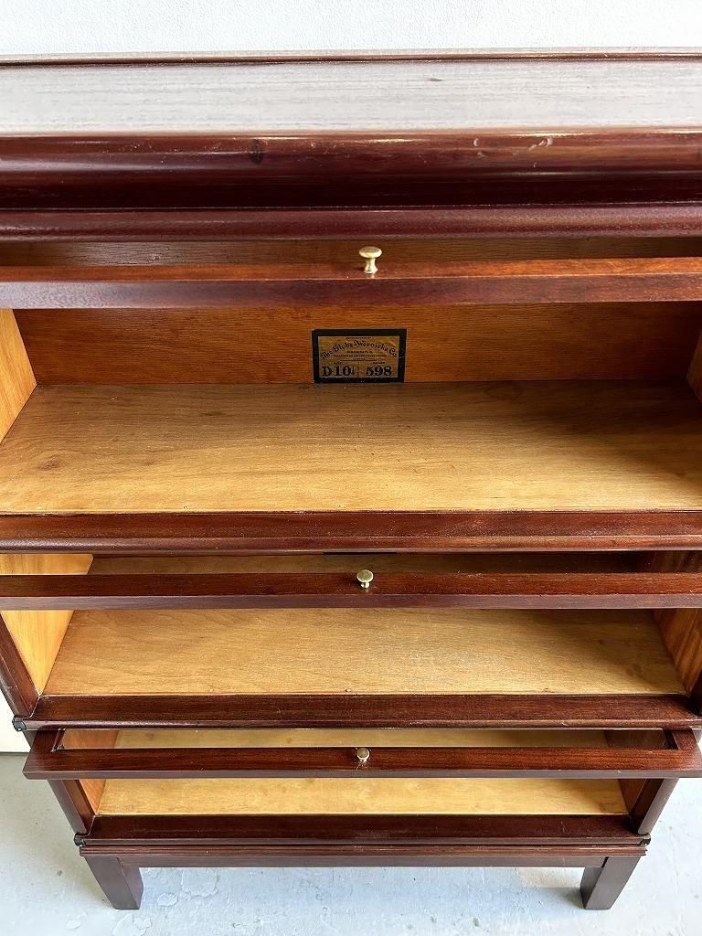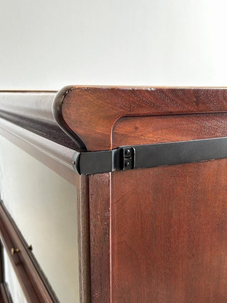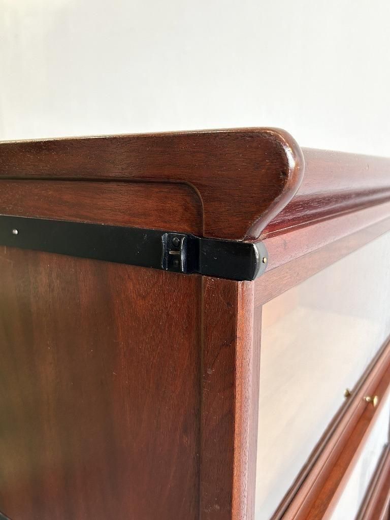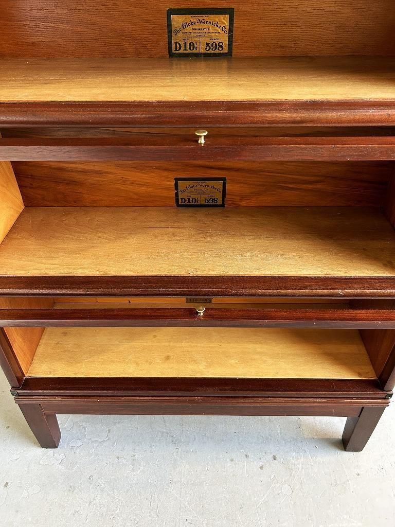 Globe Wernicke社は1899年創業のアメリカ・オハイオ州シンシナティを拠点に、イギリスやドイツにも工場を持ち、世界中で販売された歴史ある家具メーカーです。同社を代表するこの「バリスタブックケース(Barrister Bookcase)」は、耐久性と機能美を兼ね備えた20世紀初頭のオフィス家具の象徴とされています。