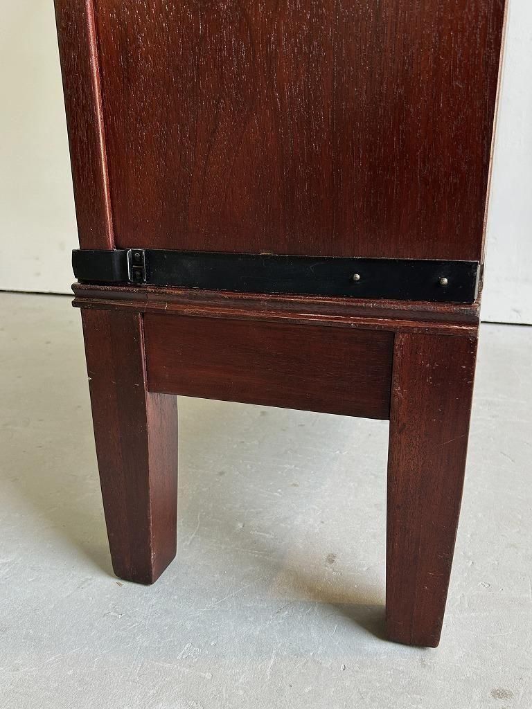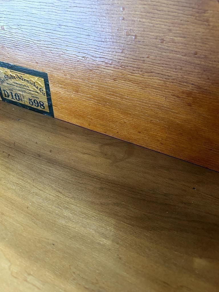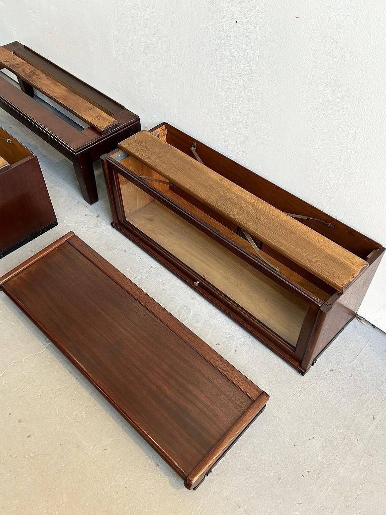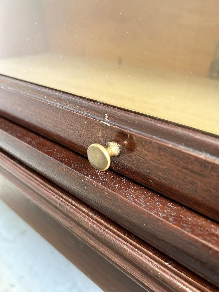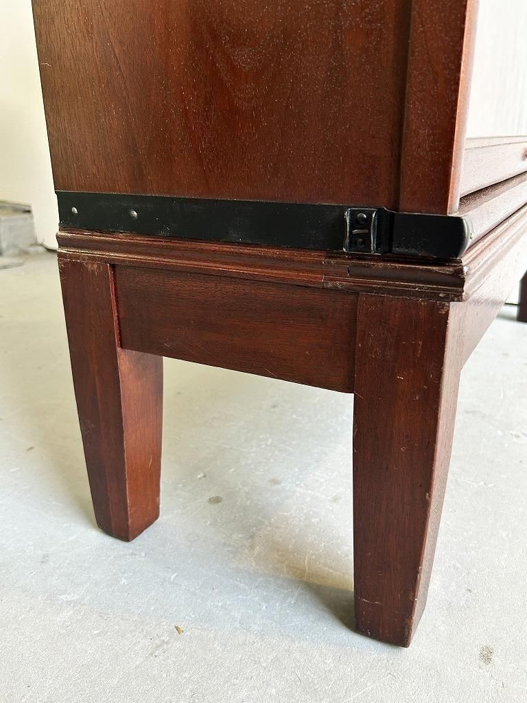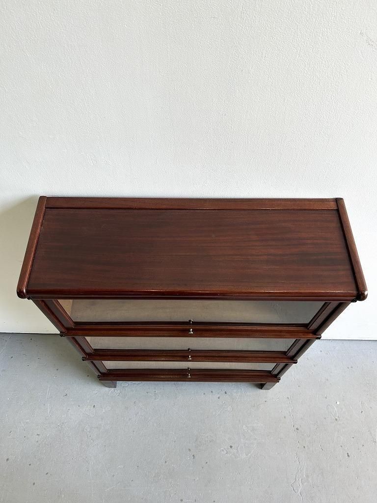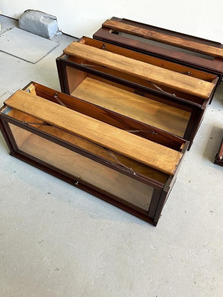 Globe Wernicke社は1899年創業のアメリカ・オハイオ州シンシナティを拠点に、イギリスやドイツにも工場を持ち、世界中で販売された歴史ある家具メーカーです。同社を代表するこの「バリスタブックケース(Barrister Bookcase)」は、耐久性と機能美を兼ね備えた20世紀初頭のオフィス家具の象徴とされています。