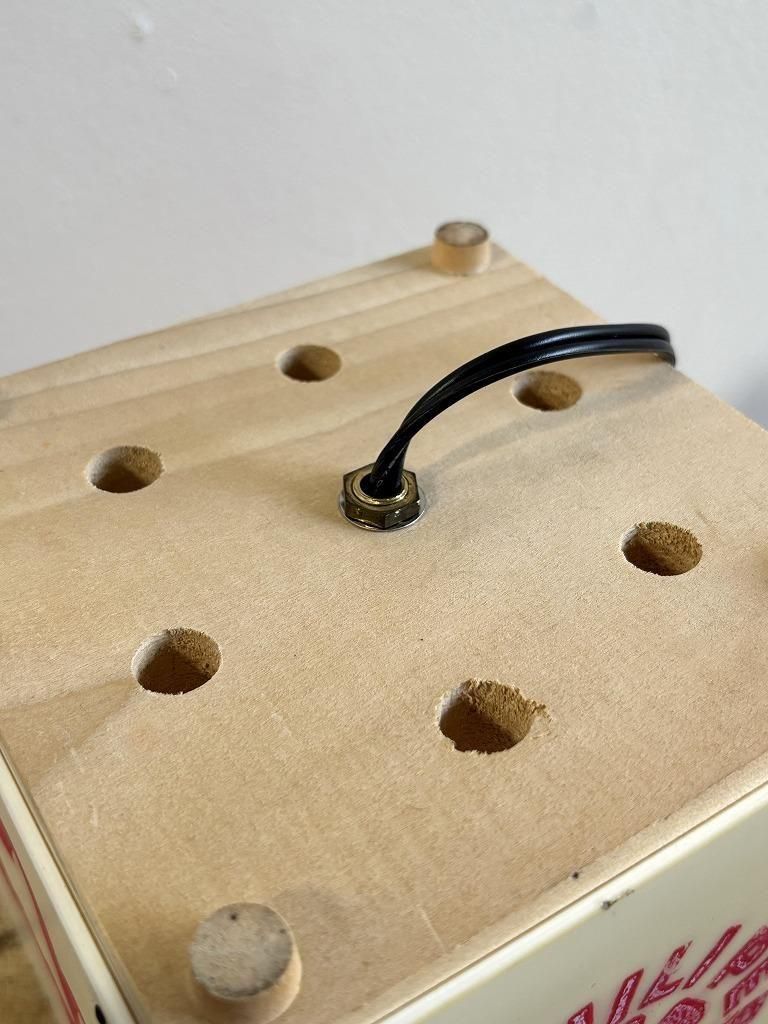 このようなアイテムは、オフィシャル販売品というよりも、ライブハウスやレコードショップなどで限定的に制作されたカスタム品、あるいはファンメイドの一点物である可能性が高く、DIYカルチャーやローファイな空気を象徴するような造形です。