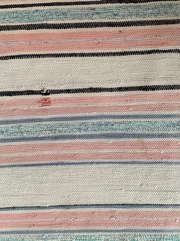 東ヨーロッパにて買い付けました、ヴィンテージの裂き織りラグです。