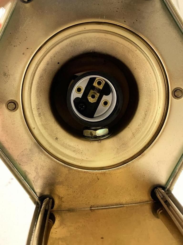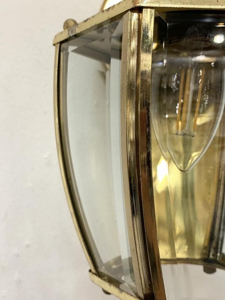艶やかなゴールドフレームは6角柱になっており、施されたガラスプレートから透ける電球が映える作り。