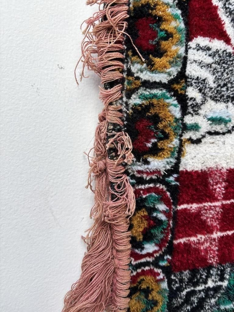 1800mm×1160mmの大判サイズで、壁に掛けると大きなアートピースとして映え、1枚で空間の主役になります。ワインレッドなどの落ち着いたトーンで構成されているので空間にクラシカルな重みを加えてくれます。