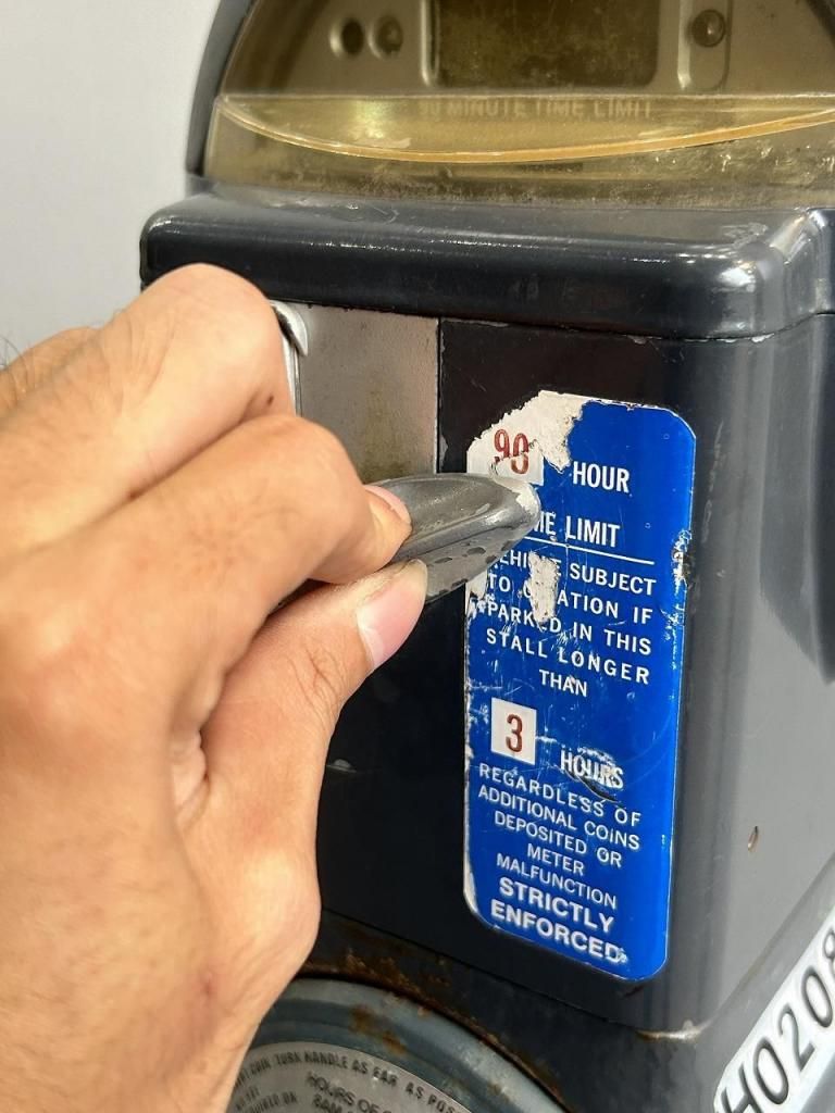 25セント硬貨を投入すると自動的に時間が加算される構造となっており、3時間制限を示すブルーのサインやステッカーも当時のまま残されています。