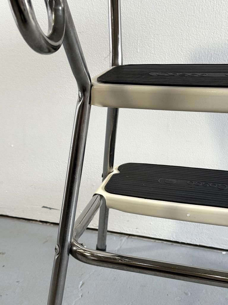 COSCO社とは、1935年アメリカ・インディアナ州コロンバスで創業し、折りたたみチェア、ステップスツール、テーブルなどの家庭用・業務用家具の製造をしていました。ミッドセンチュリー期には、スタイリッシュで機能的なキッチン家具メーカーとして人気を博し、特に「ステップチェア(Step Stool Chair)」はCOSCOを代表する製品で、現在も復刻モデルが販売されている程です。