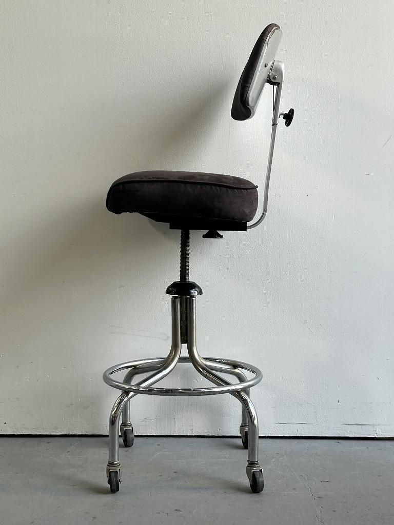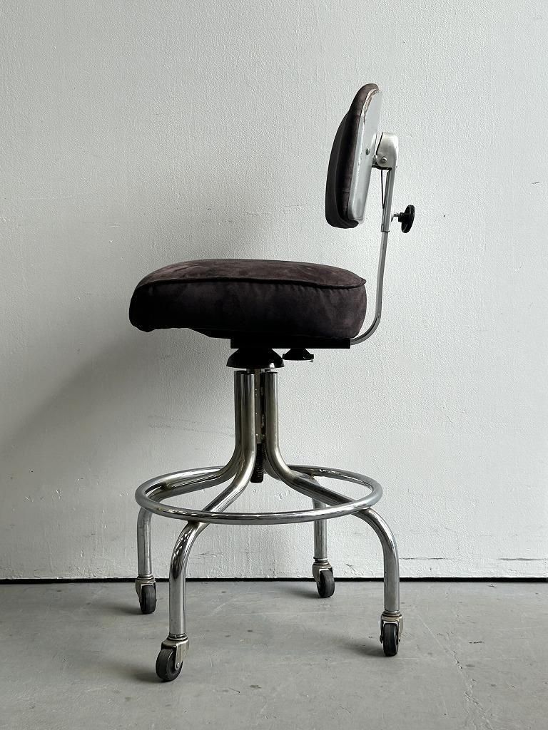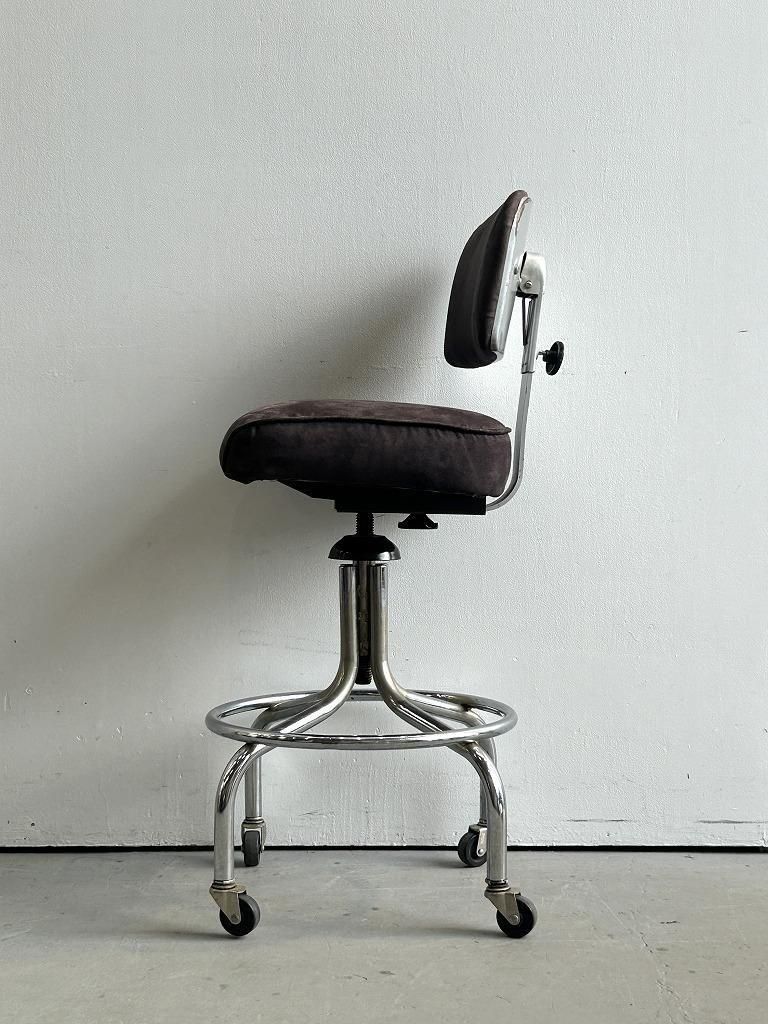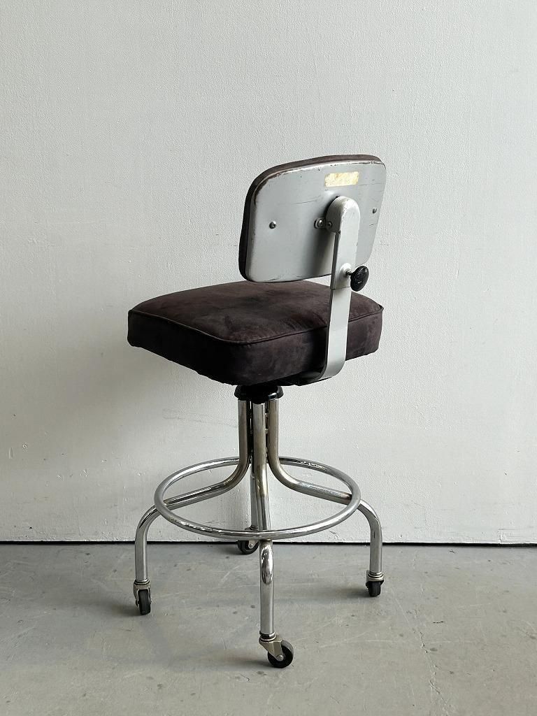 当時の製図士(Drafter)やエンジニア、工業デザイナーなどが使用していた“Drafting Chair(ドラフティングチェア)。1950〜70年代のアメリカでは、建築・工業設計が大きく発展した時代で、製図台(Drafting Table)やラボ用ワークデスクとセットで使われていました。