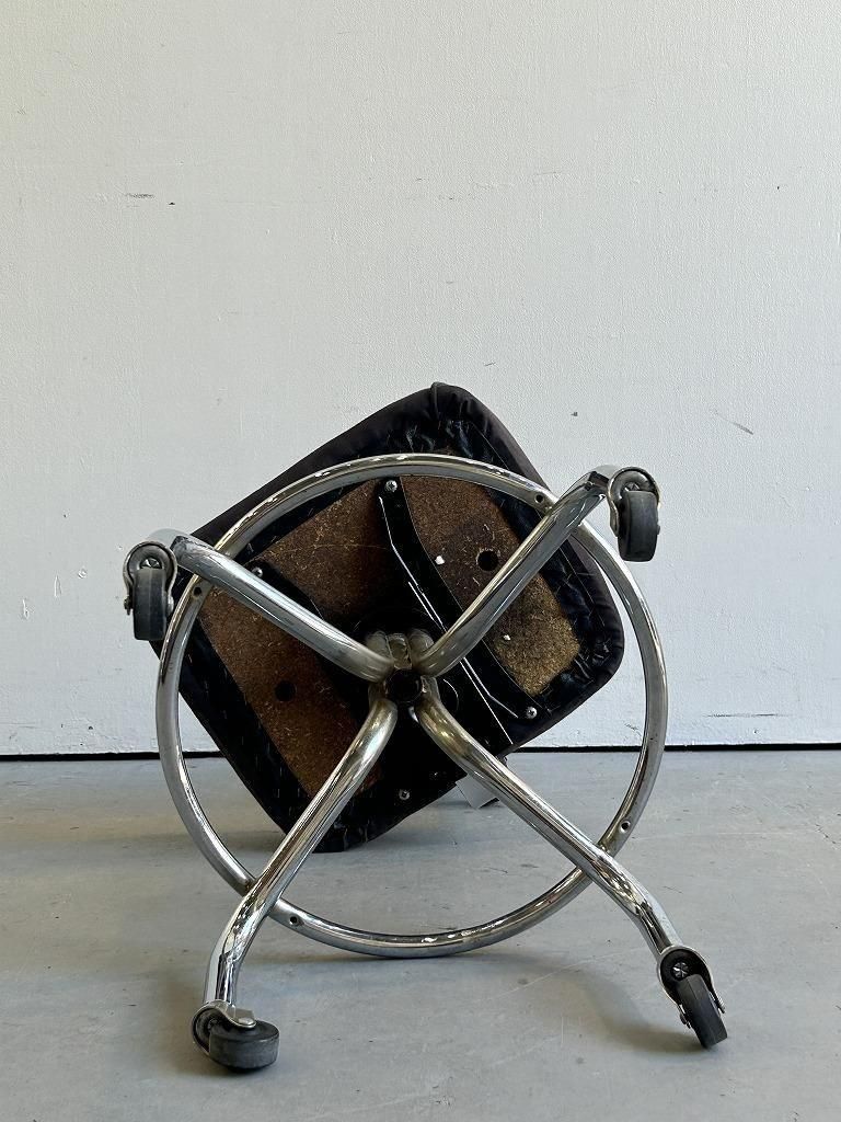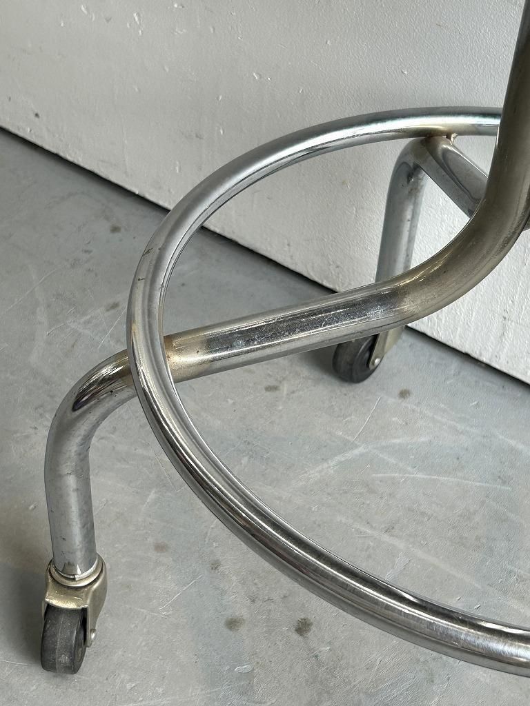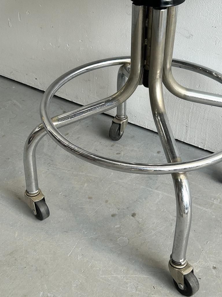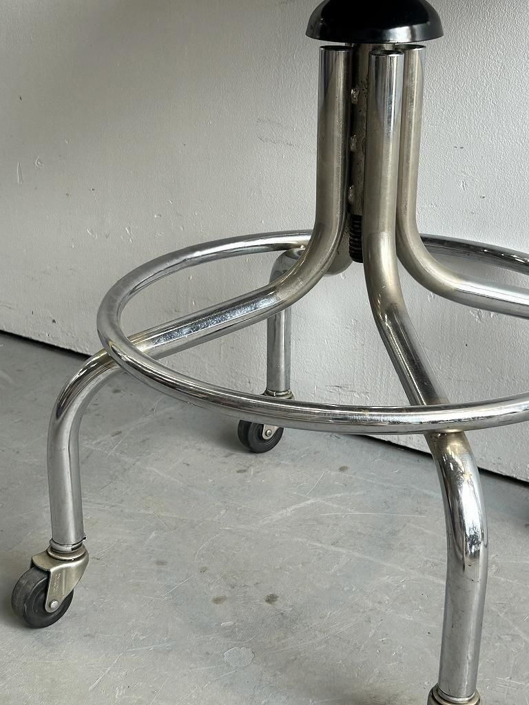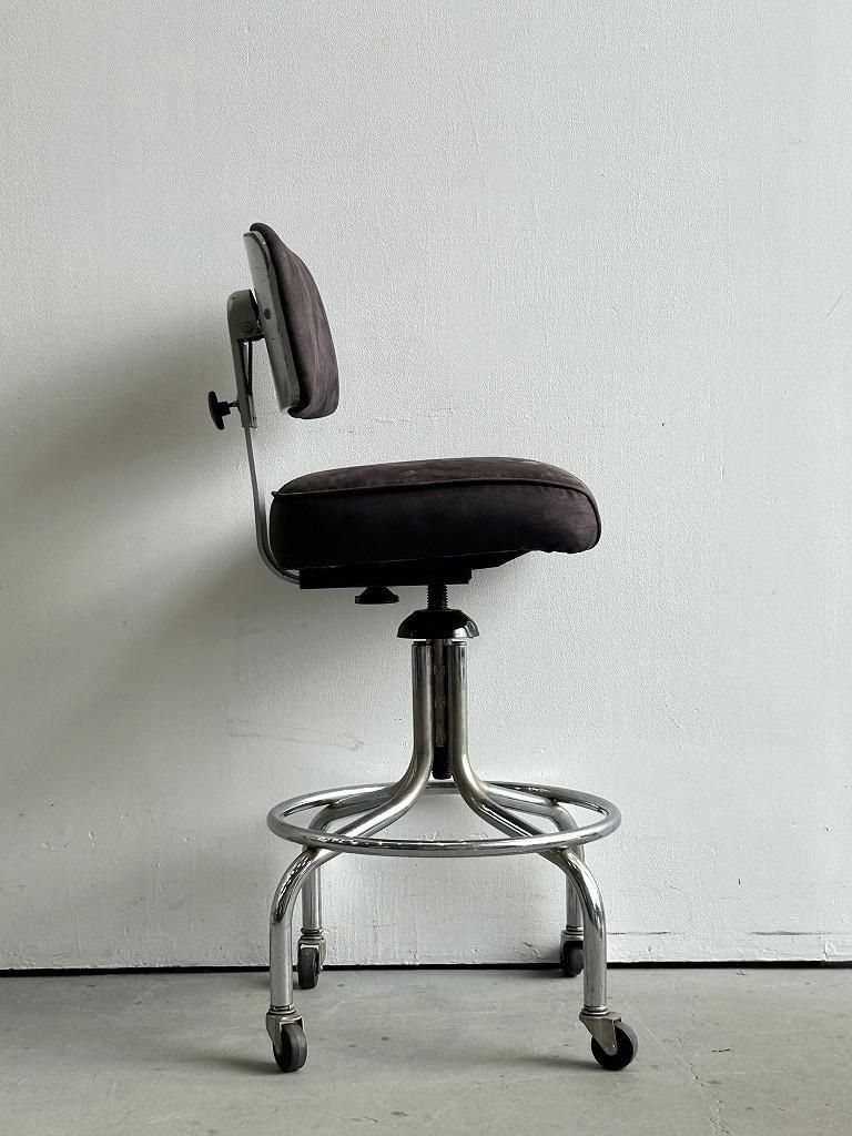 当時の製図士(Drafter)やエンジニア、工業デザイナーなどが使用していた“Drafting Chair(ドラフティングチェア)。1950〜70年代のアメリカでは、建築・工業設計が大きく発展した時代で、製図台(Drafting Table)やラボ用ワークデスクとセットで使われていました。