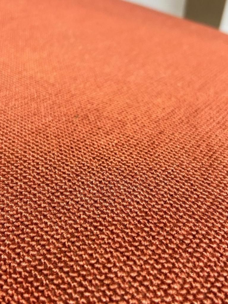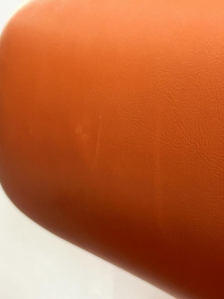 無機質な素材の冷たさと、オレンジの温かみのある有機的な色のバランスが味わい深いです。