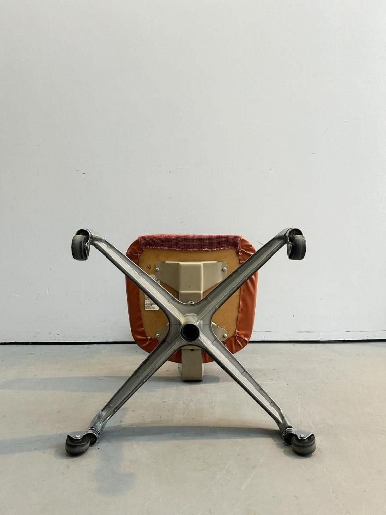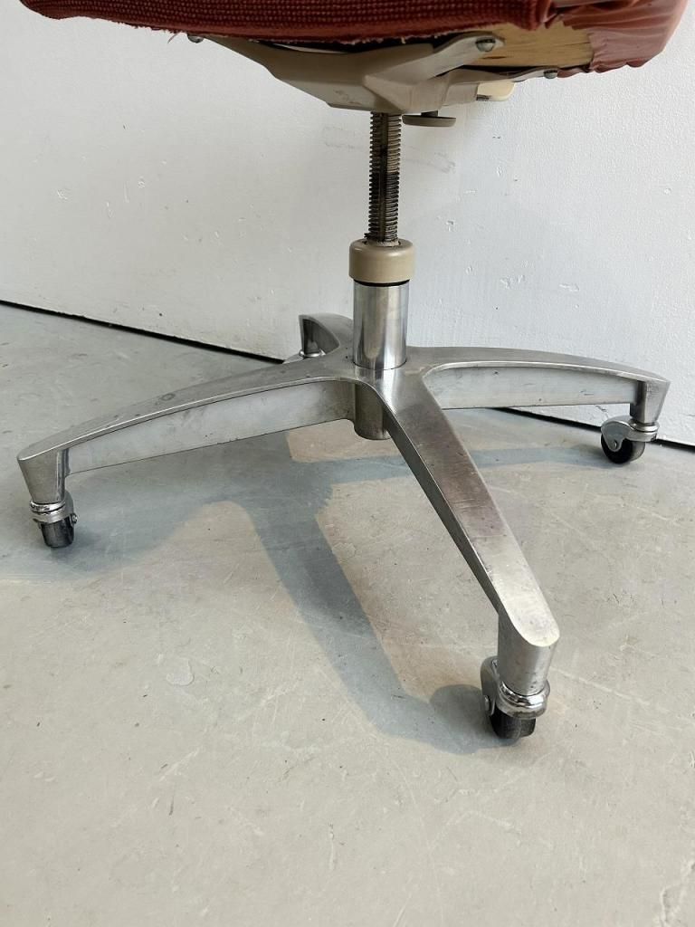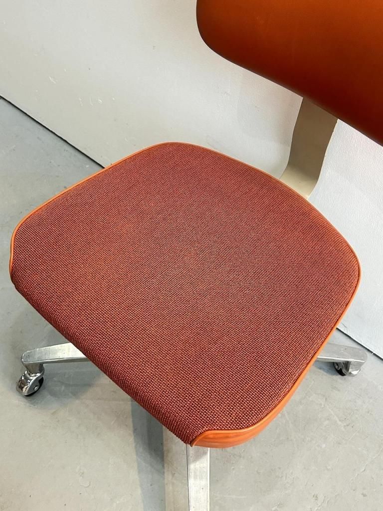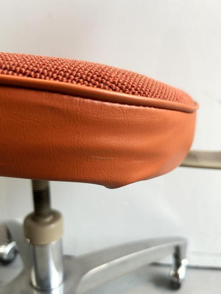 座面・背もたれ内部はポリエーテルフォームで構成され、当時の高級業務用モデルに採用されていた仕様で、弾力性があり50年以上経っても形状がしっかりとしています。