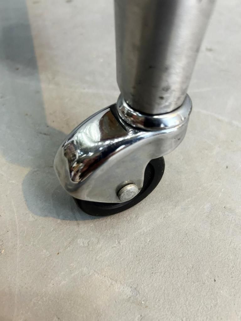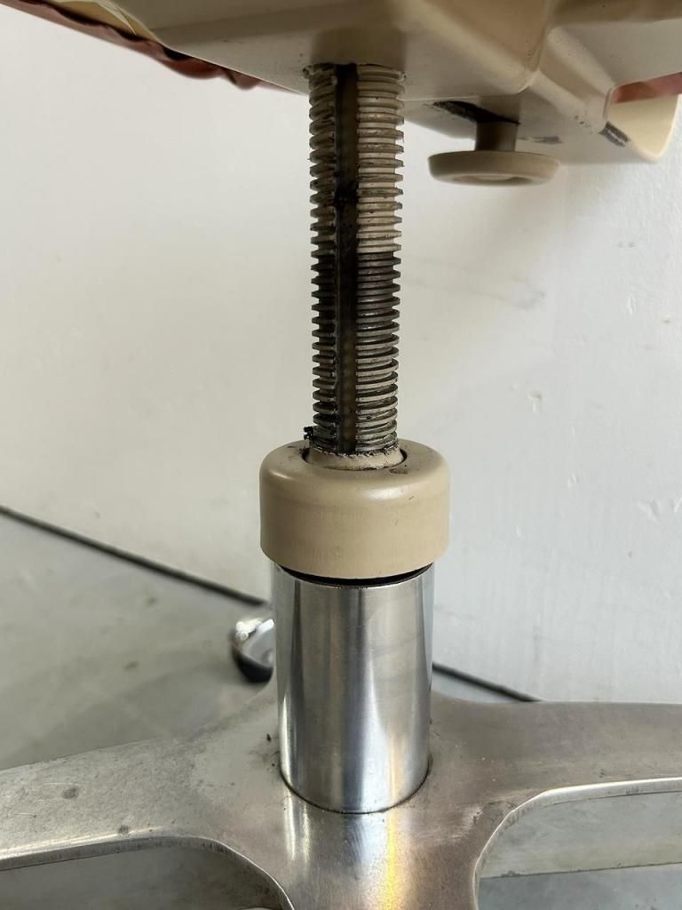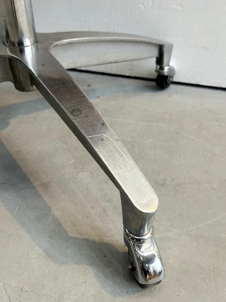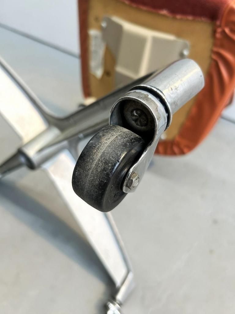 キャスター付きで機動力があり、360度回転、座面背もたれの高さ調節、軽くリクライニングが可能で工業製品ならではの実用性があります。