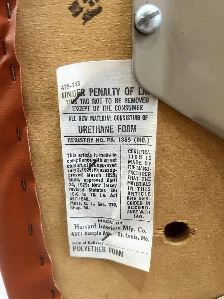 Harvard Interiors Mfg. Co.とは、当時のアメリカ中西部で盛んだったオフィスファニチャー産業の一角を担うメーカーで、主に1950〜1970年代にかけて活躍。教育機関やオフィス・研究施設向けに納品することが多く、実用性の高い業務家具ブランドとして知られていました。