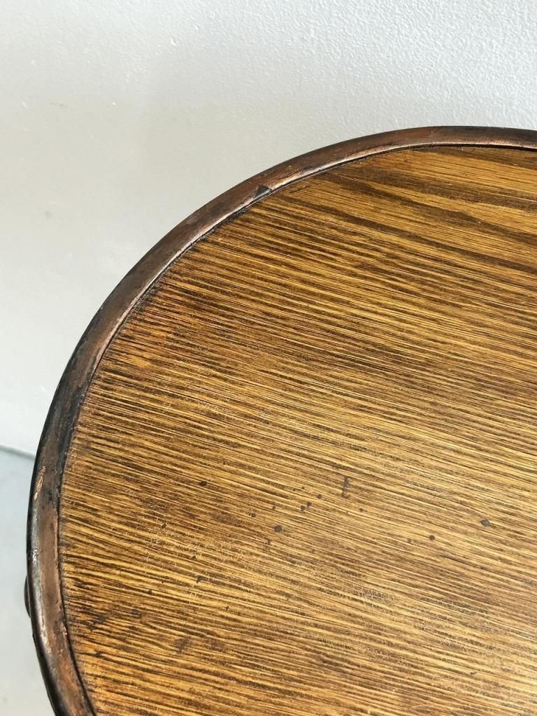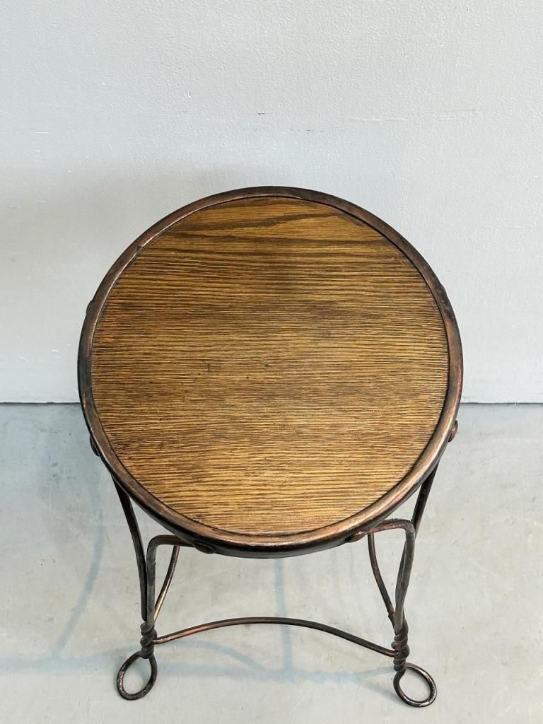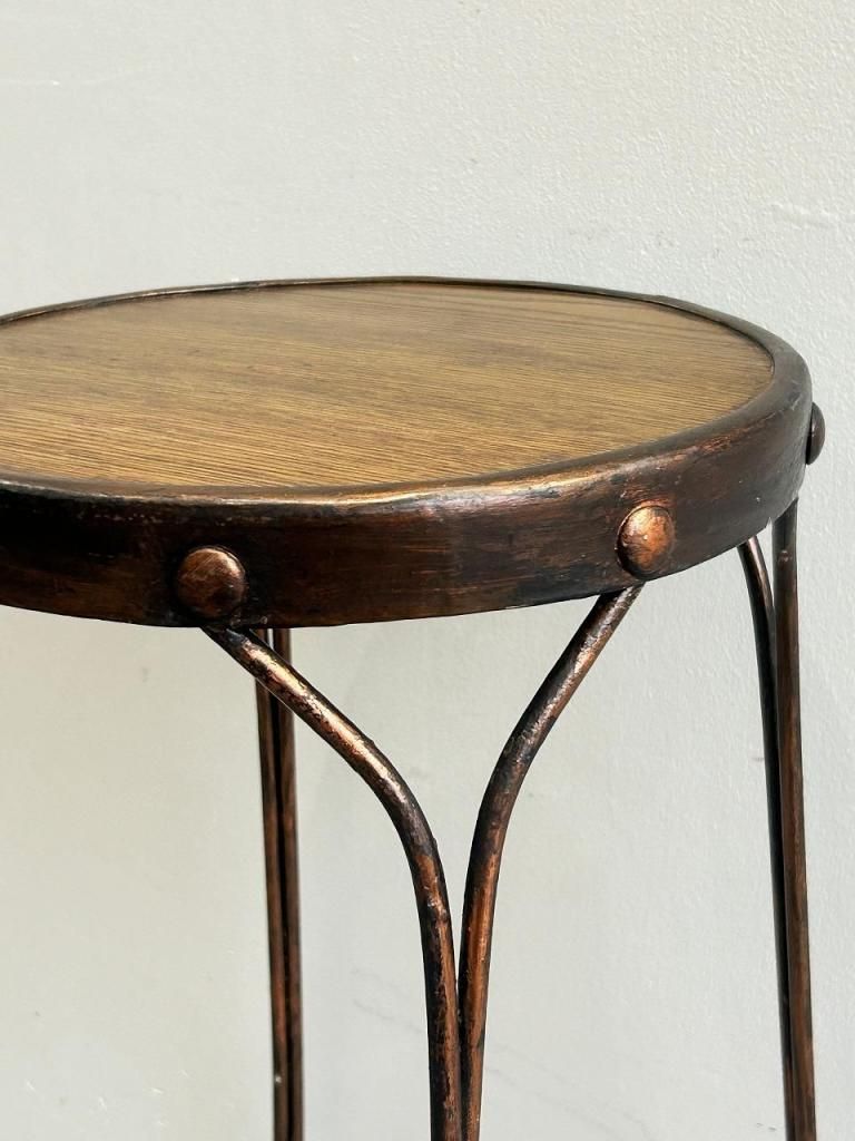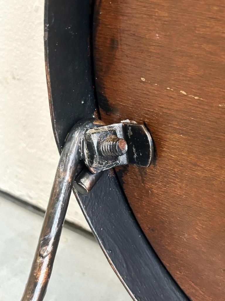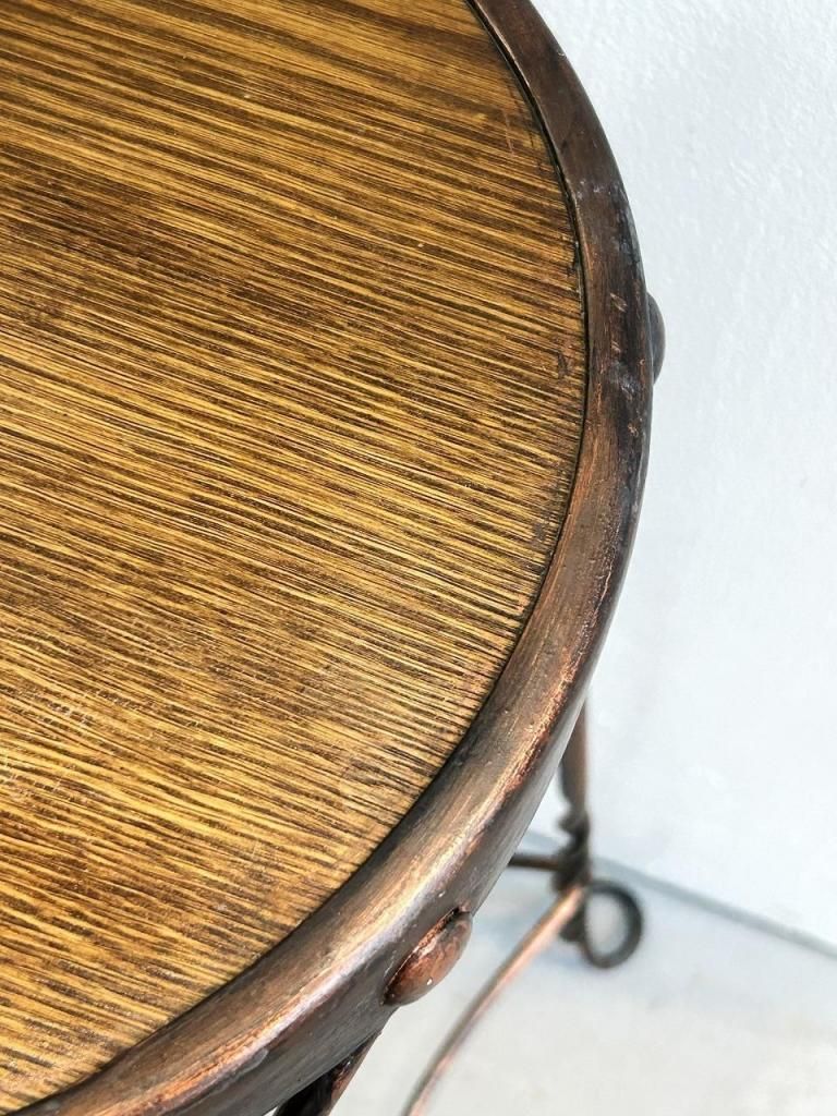 日本漆器を模した塗装技法のジャパンカラー仕上げで、深いブロンズブラウンの地色は単なる塗装では出せない深みがあります。ジャパンカラーのアイアン家具は、戦時期に生産停止したため現存数が少なく希少です。