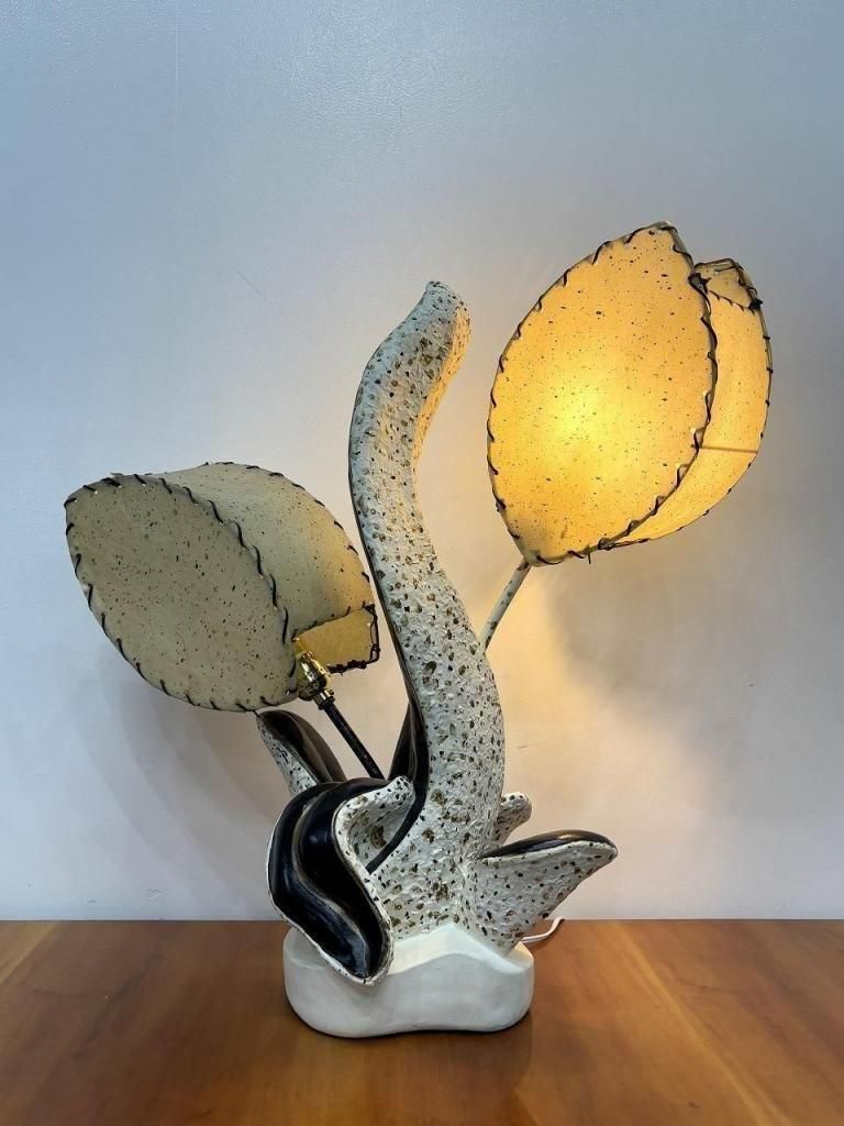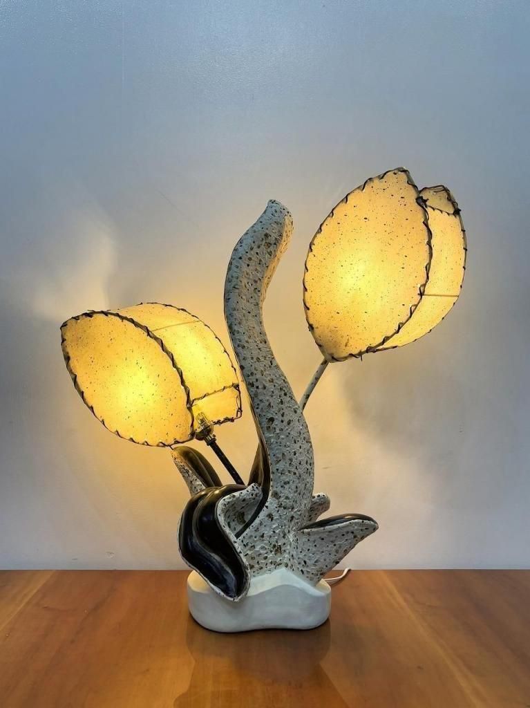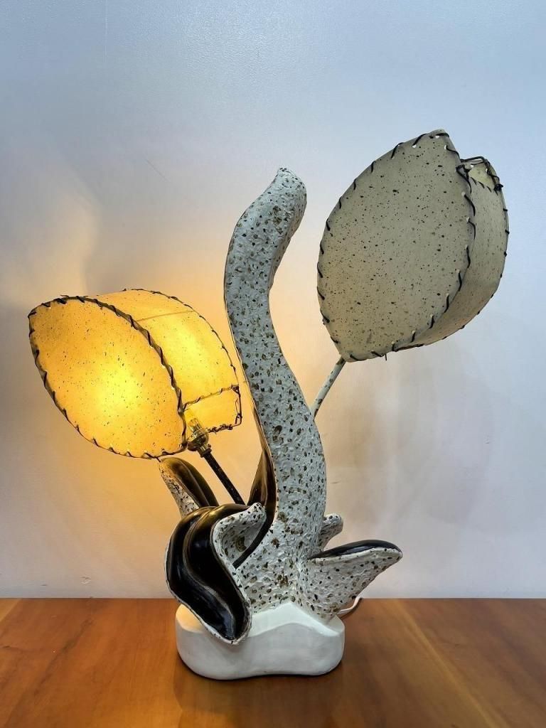 1950年代アメリカの陶磁器ランプに多く見られた自然をモチーフとした有機的造形をプラスターで再現。陶磁器よりも柔らかな質感が特徴的です。
