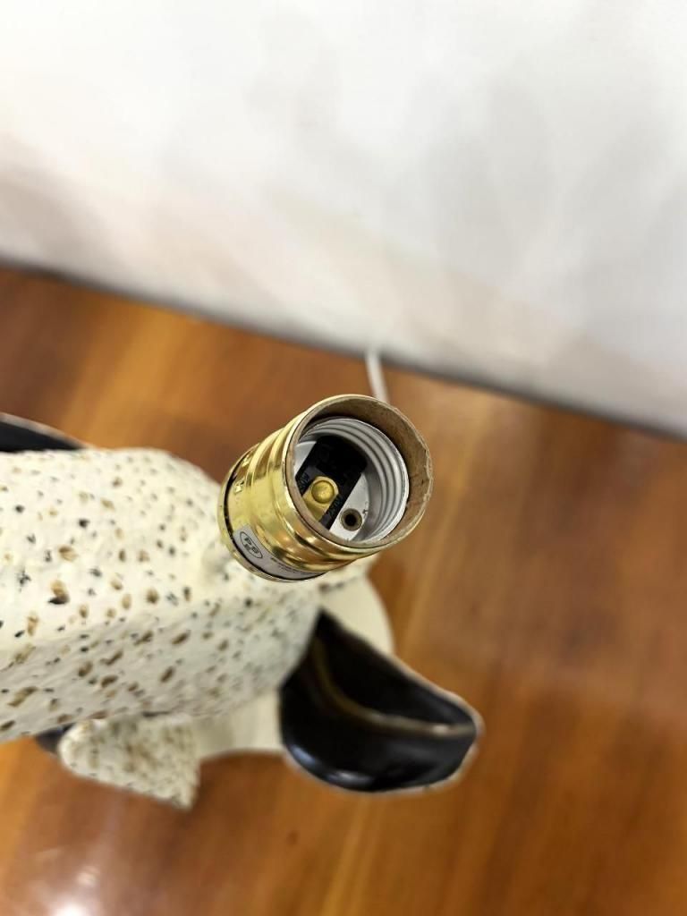 プラスターベースは、アート作品のような流動的デザインを出しやすい反面、脆く、欠けやすい・ひびが入りやすいという弱点があり、当時の物が状態よく残っているのは大変希少です。ファイバーシェードも同じく経年で割れ・変色・脆化しやすく、当時のオリジナルシェードが残っているものは非常に貴重となっております。