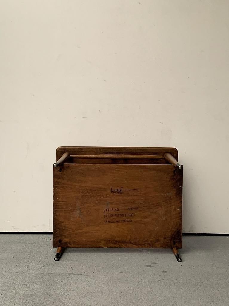 アメリカより仕入れました、1968年製のLANE社製 木製サイドテーブルです。