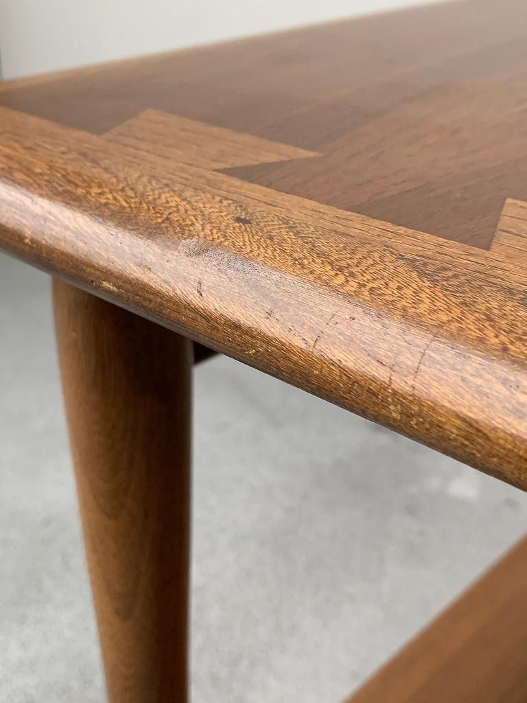 上質なウォールナット×オーク材で形成されダブテイルデザインで、LANE社の代名詞でもある『Acclaim』シリーズの1台。シンプルな形状ながら、異なる木材を組み合わせたダブテイルから木工技術力の高さを感じ、上質なテーブルに昇華されています。