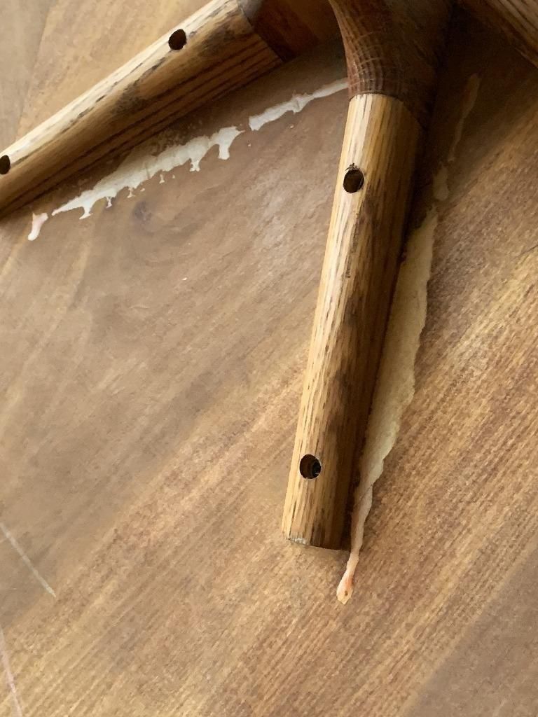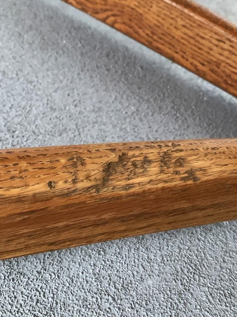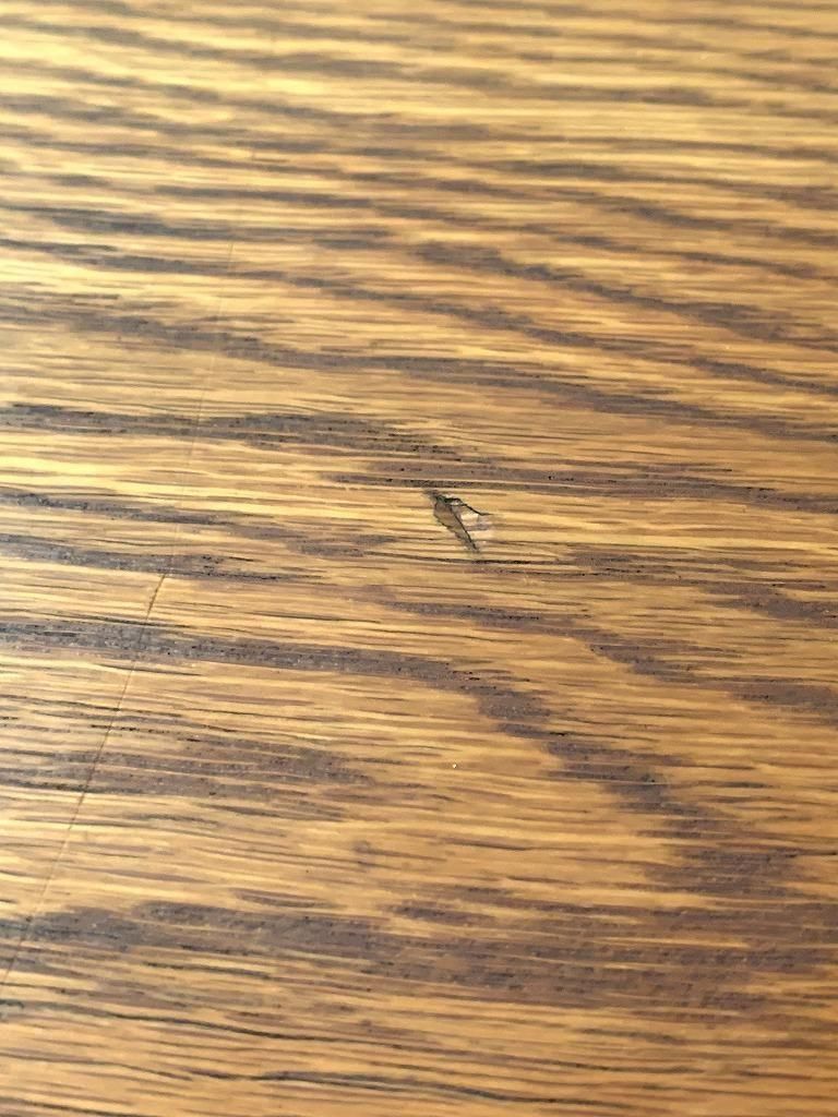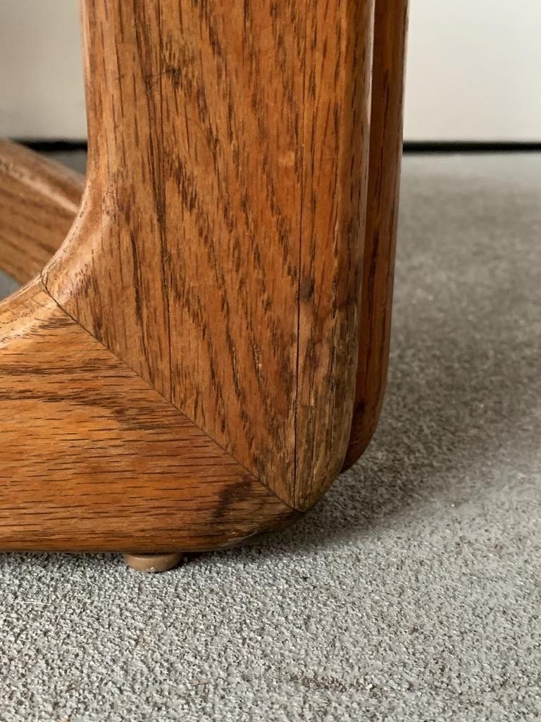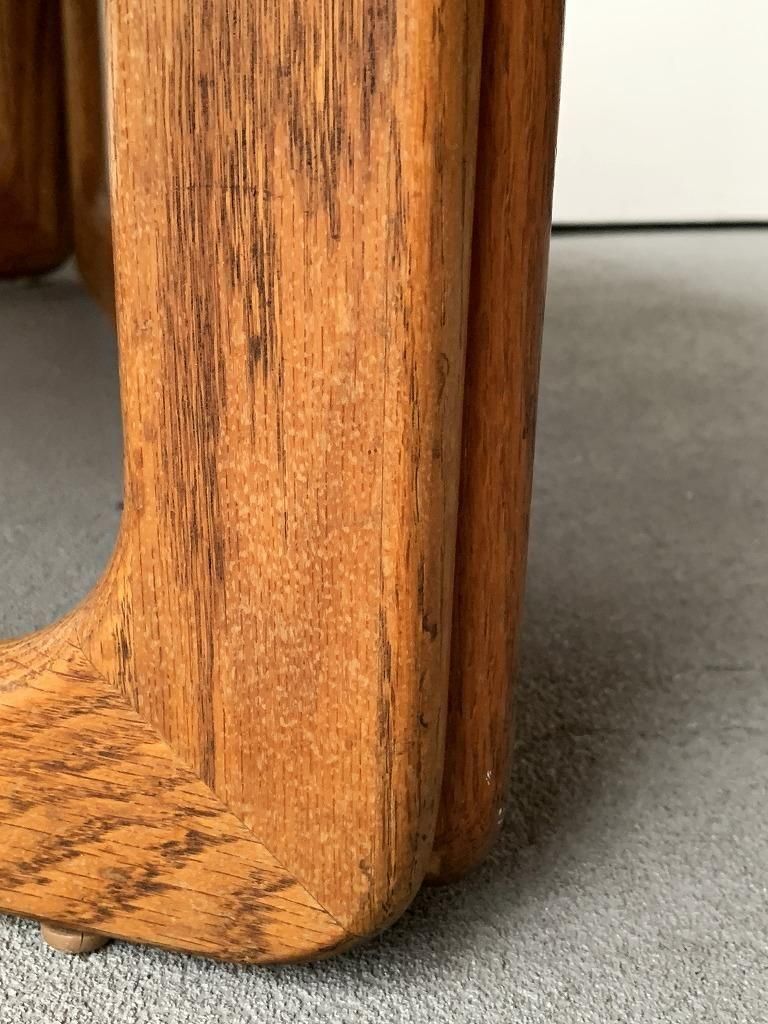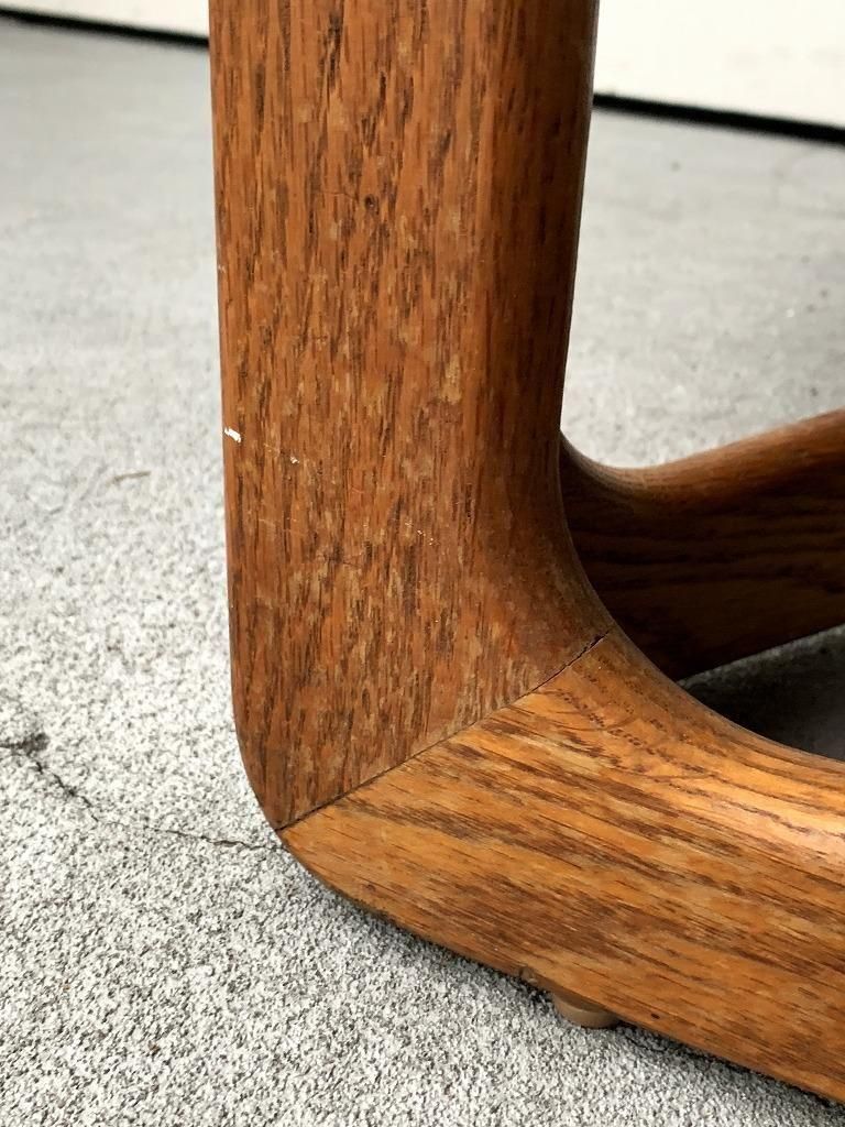 天板にはLANE社の特徴のオークを使用し、中央から虎斑模様が放射状に伸びる圧巻の杢目。虎斑の杢目は、オークの中でも特に美しく見る角度によって表情が変化します。