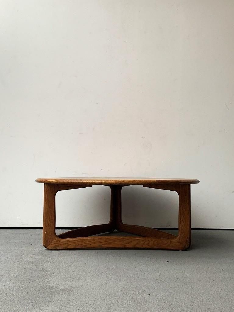 ボリューム感のある丸みを帯びた縁取りに、台座部分の三角構造に近い一体成形のベースなど、彫刻的な美しさを感じさせ、1980年代のアメリカン・コンテンポラリーに通じる意匠となっています。